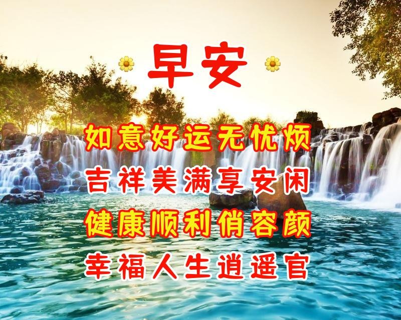 4、如意好运无忧烦,吉祥美满享安闲,健康顺利俏容颜,幸福人生逍遥官,早安