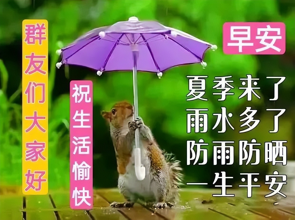 清晨的雨露清澈透明,多事的蝉儿热闹的鸣唱,欢快的喜鹊掩饰不住心中的喜悦,可人的小麻雀也叽叽喳喳,原来你醒了,轻轻的问候一声:早安开心一整天。