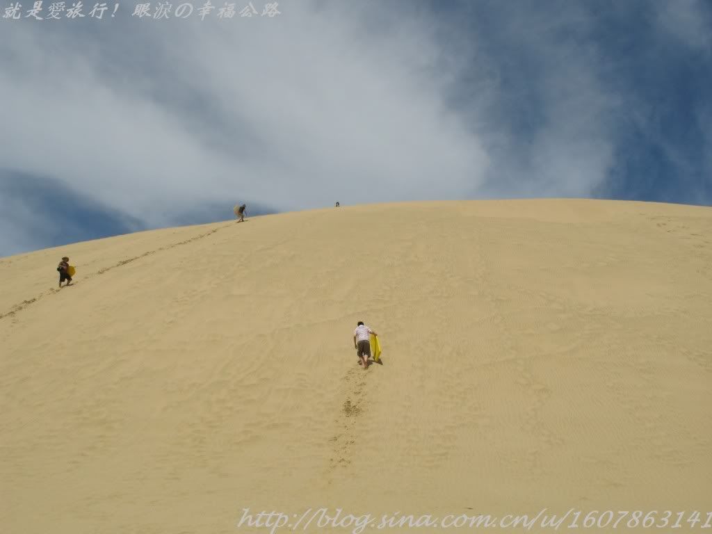 艱苦的路程才剛剛開始,還要再繙過眼前這沙丘呢!不過也可以在這裡就開始滑拉,