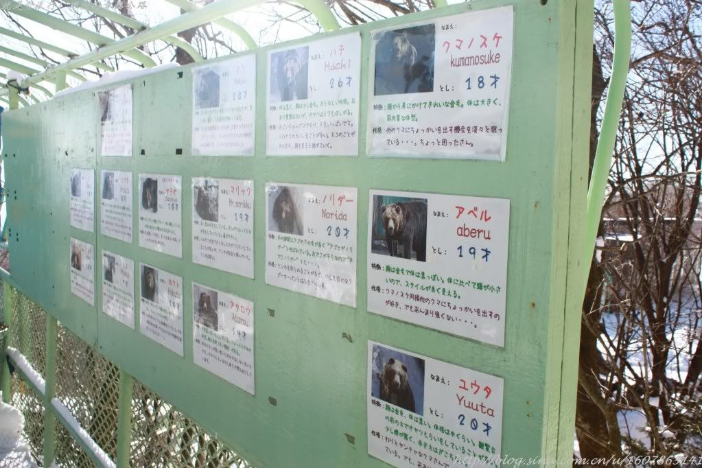 這個板上張貼著這裡的每只熊的名字和年齡還有他們的獨照,