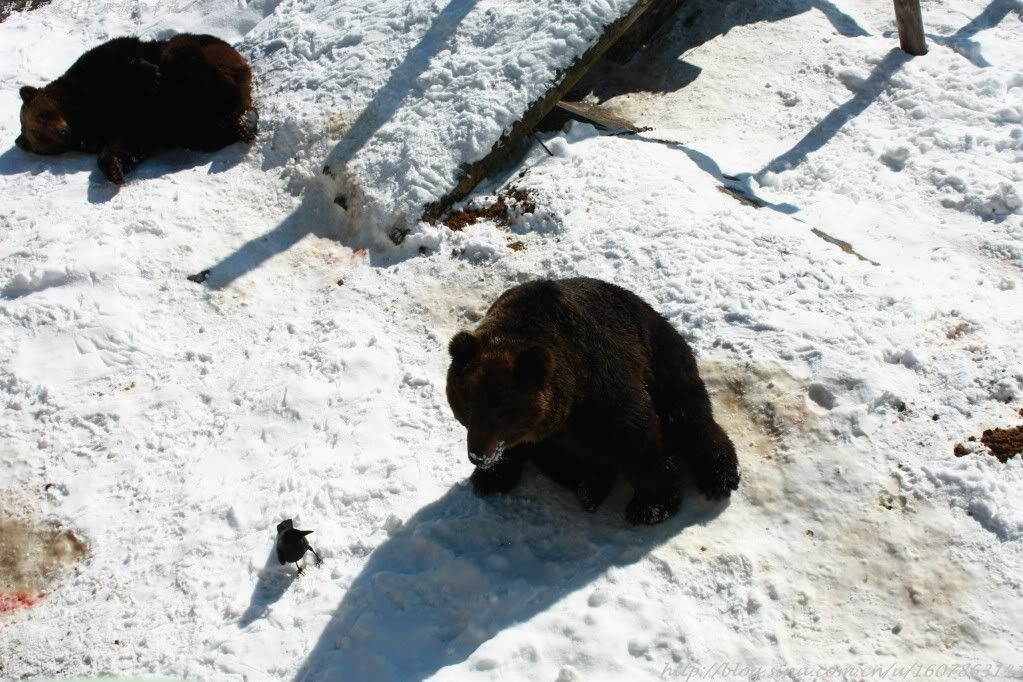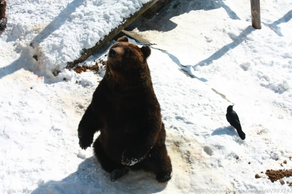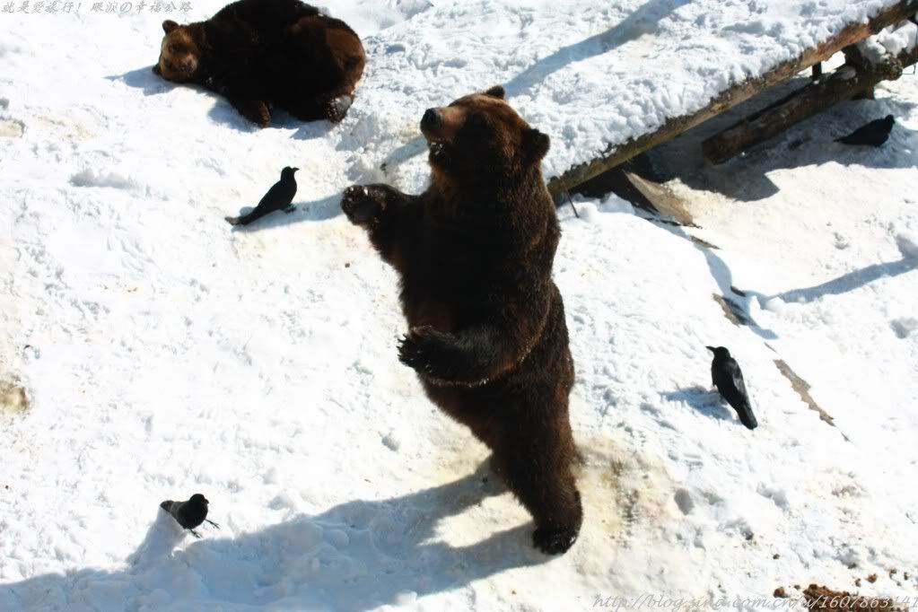 而烏鴉們就沒有閑下來過,不停的在和作揖的熊們爭食呢!