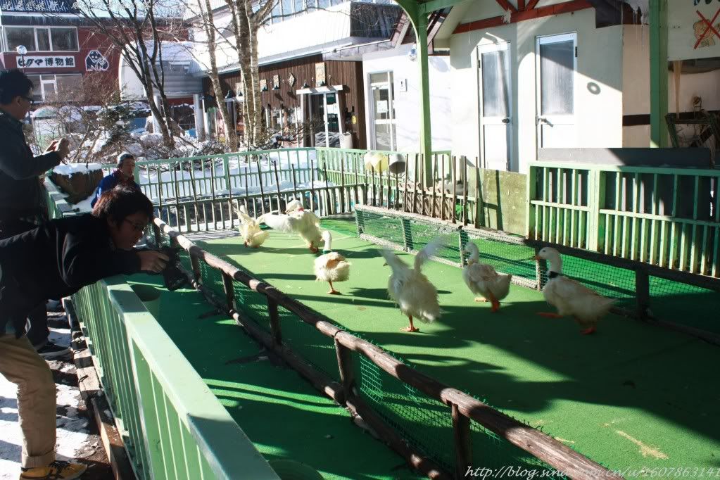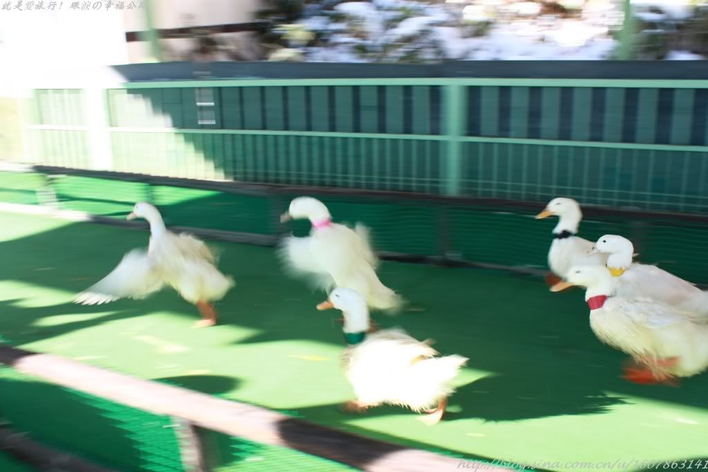 日本北海道登別溫泉鄉熊牧場儡鴨子賽跑比賽 |