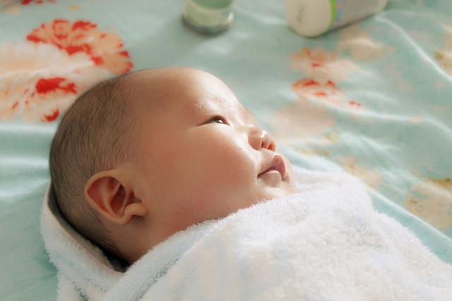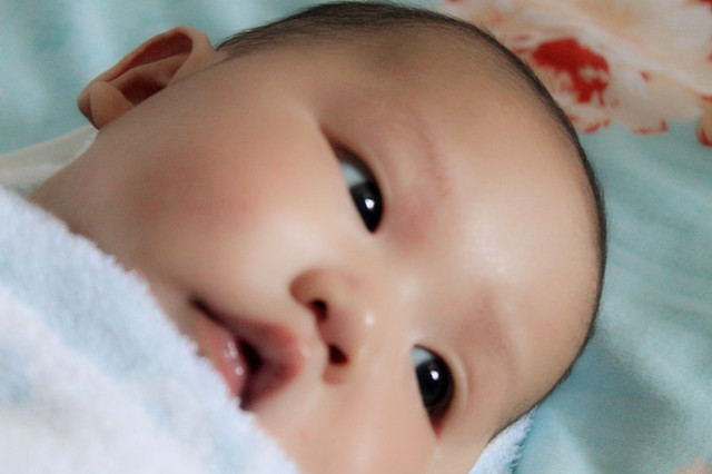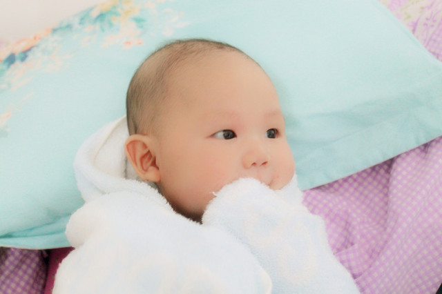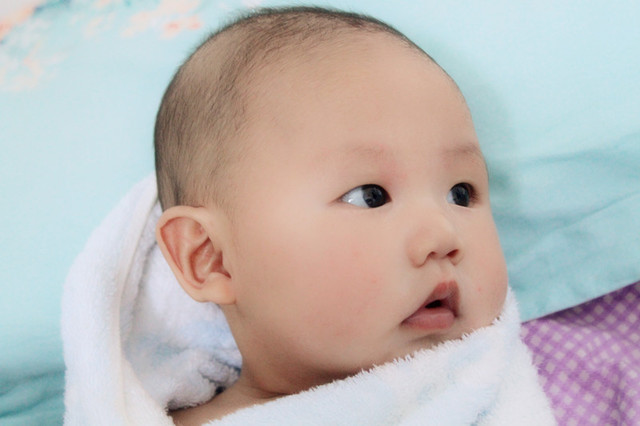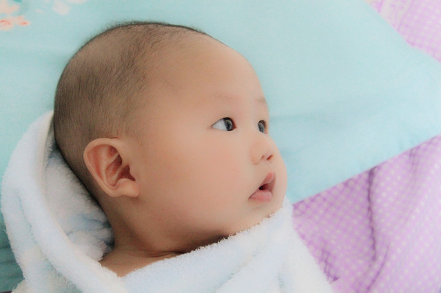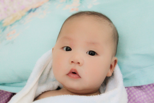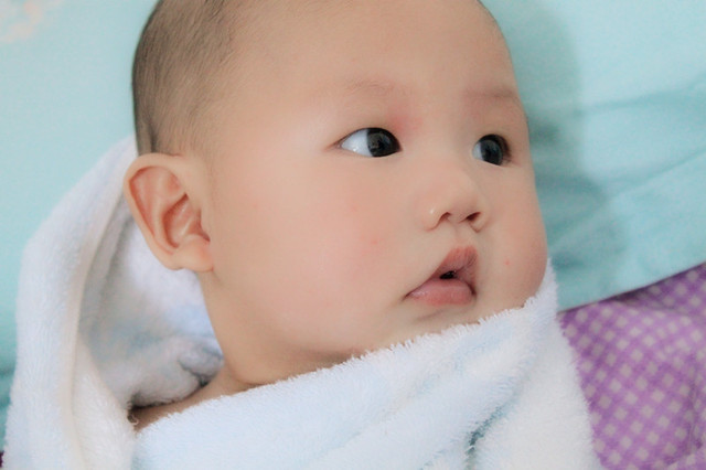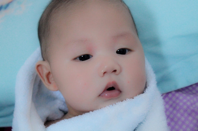 今天麻麻给他拍了几张浴巾照,呵呵。