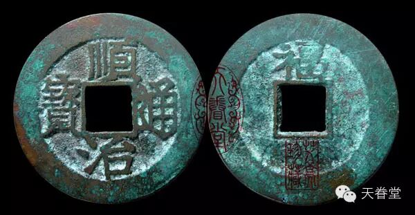 (上图)天眷堂馆藏顺治通宝背福一厘