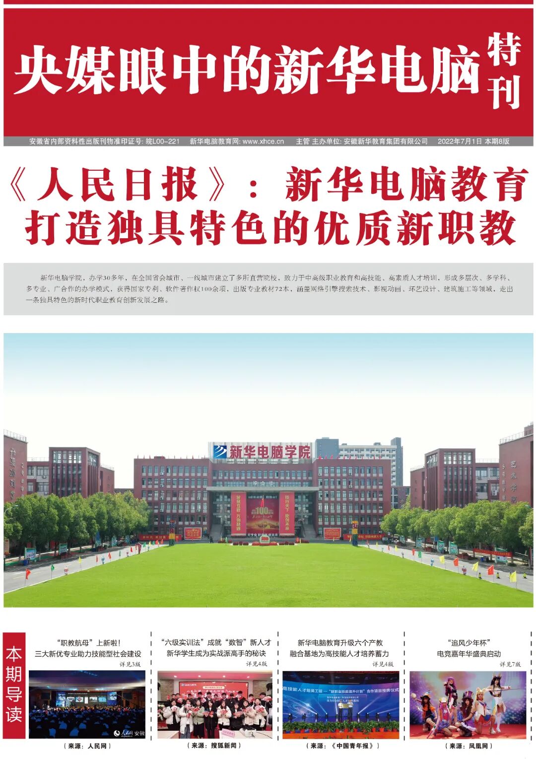 《人民日报》指出,新华电脑学院,办学30多年,在全国省会城市、一线城市建立了多所直营院校,致力于中高级职业教育和高技能、高素质人才培训,形成多层次、多学科、多专业、广合作的办学模式,获得国家专利、软件著作权100余项,出版专业教材72本,涵盖网络引擎搜索技术、影视动画、环艺设计、建筑施工等领域,走出一条独具特色的新时代职业教育创新发展之路。
