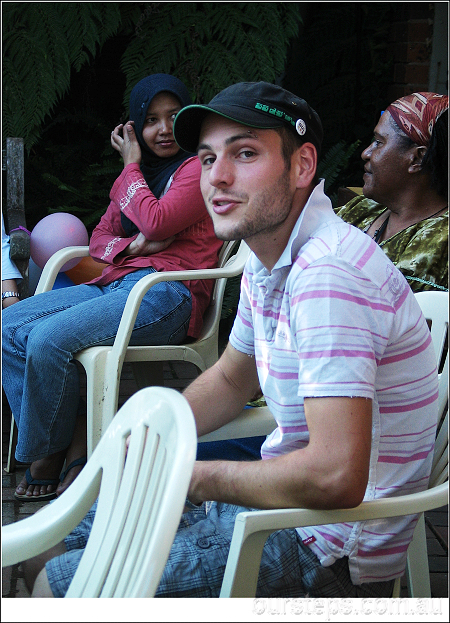 其实吃的东西很简单,无非是作为开胃的 garlic bread,然后是pasta salad,米饭沙拉,烤肉,烤肠和清真的烤鱼(给印尼的教徒准备的),各式饮品和甜点,水果等。其间主要是以聊天为主。