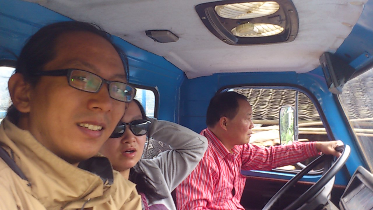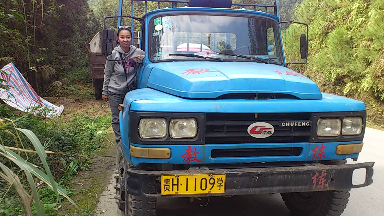 从雷山县到榕江搭上一辆老解放卡车,车是驾校的,副驾驶脚下还有脚闸和油门。山路全是急弯,颠的厉害,我跟黄姗挤在一起,怕一脚踩到油门上。