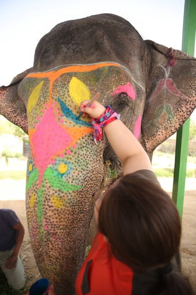 “这样在人家脑袋上折腾,对大象好吗?”我拿着竹子做的笔刷,有点忐忑。