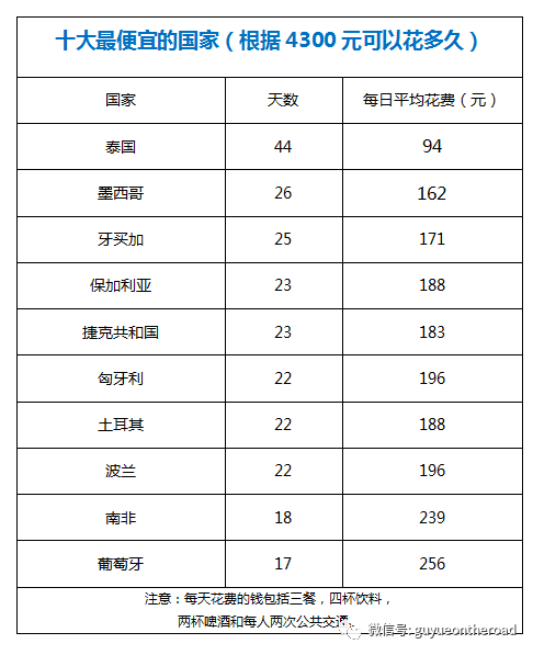 而美国和澳大利亚就显得平易近人很多:每天大约只有428人民币的花费。