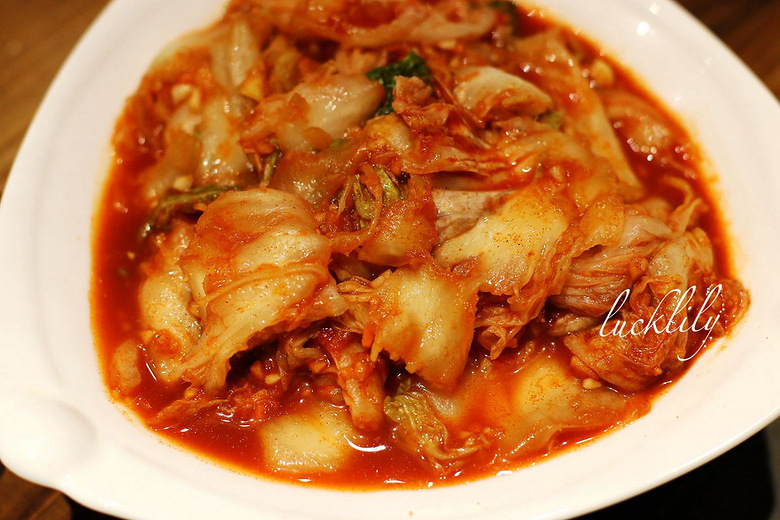泡菜,这泡菜也很有讲究,吃起来跟想像中重辣带酸的泡菜味道不一样哩,这是用梨汁和苹果汁共同腌制起来的泡菜,是老板家的独家配方,大家都知道,东北人家每家做出来的泡菜味道可能都不一样,各有各的风味儿,这家的就非常适合当冷菜,酸辣得当,微甜脆爽。