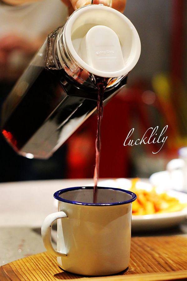 在等待煮鱼的时侯,我们点了好几种饮料和东北小菜,店里的蓝莓汁值得推荐。