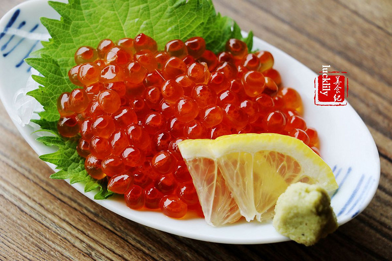 最为喜欢的三文鱼籽刺身,鱼籽晶莹透亮,尤如一粒粒宝石,淋上柠檬汁,入口时咬破鱼籽,Q弹爆浆的口感,可谓舌尖享乐的极致体验。