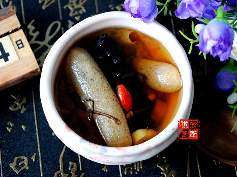 《本草纲目拾遗》中记载:海参,味甘咸,补肾,益精髓,摄小便,壮阳疗痿,其性温补,足敌人参,故名海参。海参具有提高记忆力、延缓性腺衰老,防止动脉硬化以及抗肿瘤等作用。因为每天的食用量亦不可以太多,所以海参非常适宜用来炖汤,适量取食。