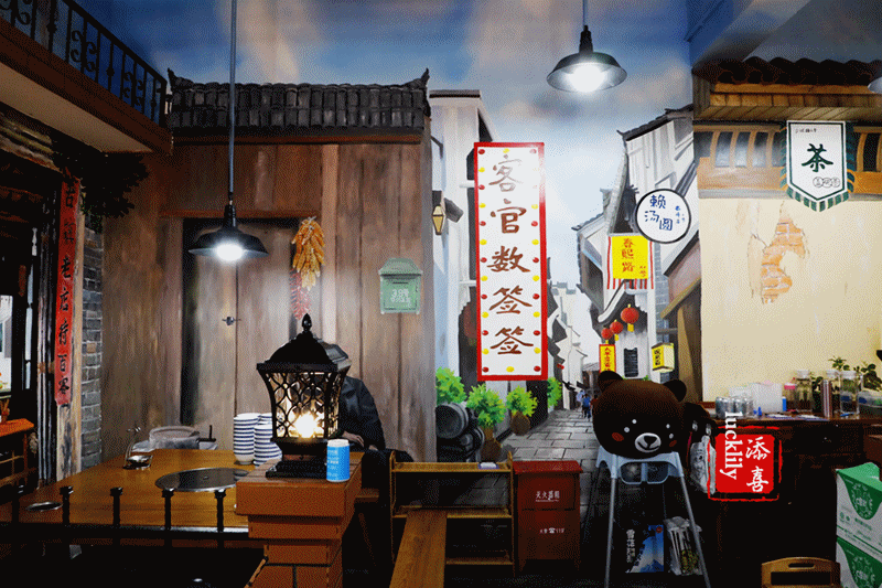 餐厅内的环境很怀旧,满墙的壁绘都是老巷里曾经的故事,那时候的我们很纯朴,“签签手”就是爱情。