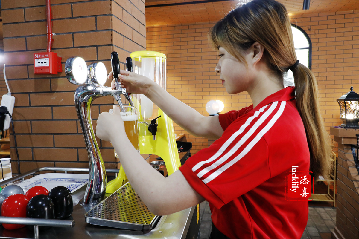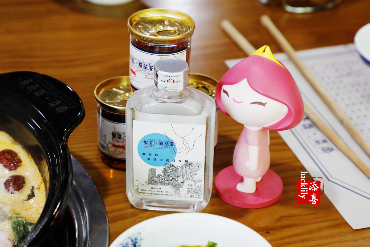饮品有啤洒中的鲜果之称的珐酷原浆鲜啤,川蜀特色的酸梅汁、唯怡豆奶、客官数签签定制版的白酒。