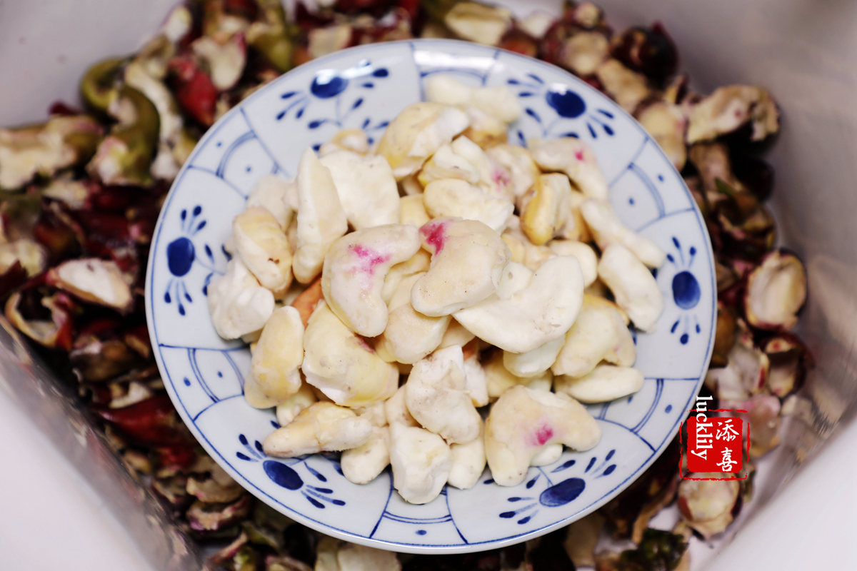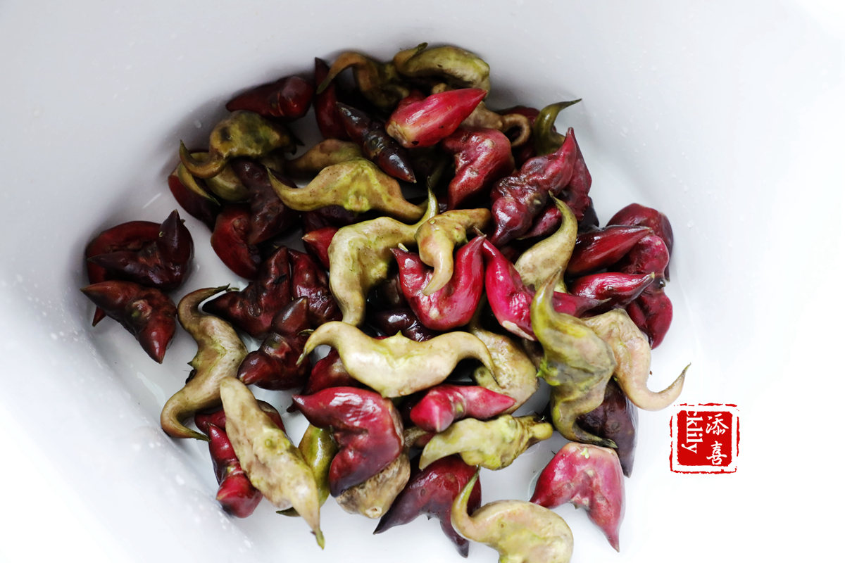 菱角是买回来了,青色的嫩,红色的相对老一些,其实生食味道也很好,爽脆清甜,剥菱的技巧还是景区门口的保安大哥教我的。