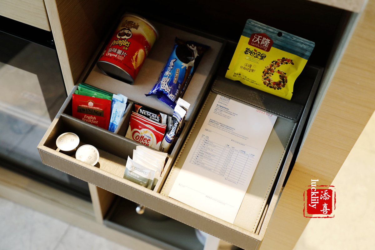 一直觉得多家喜来登酒店的前台设计非常的庄重,万豪旅享家可以享用贵宾通道。前台一侧给客人准备了红茶、柠檬水、薄荷水等三种冷热饮,格外的贴心。