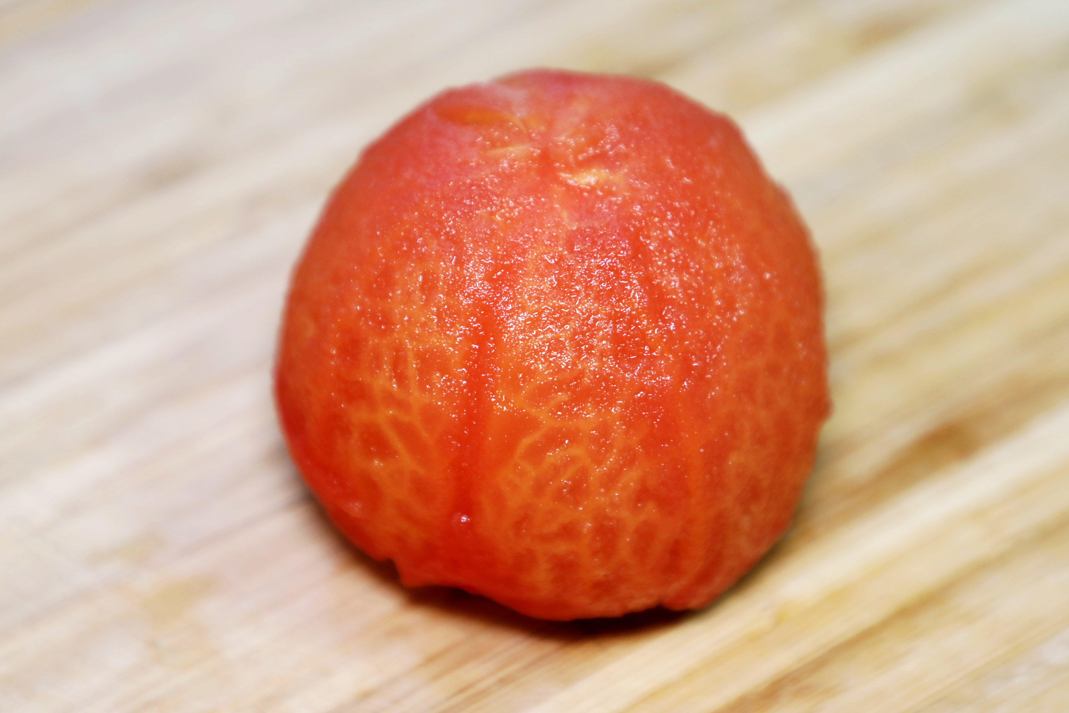 1、番茄去蒂,头部切十字,放入沸水中一小会儿,可以轻易去皮;