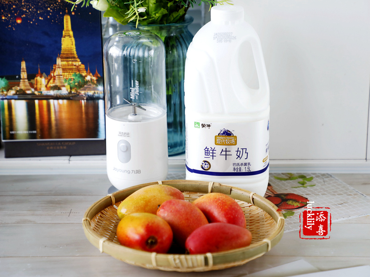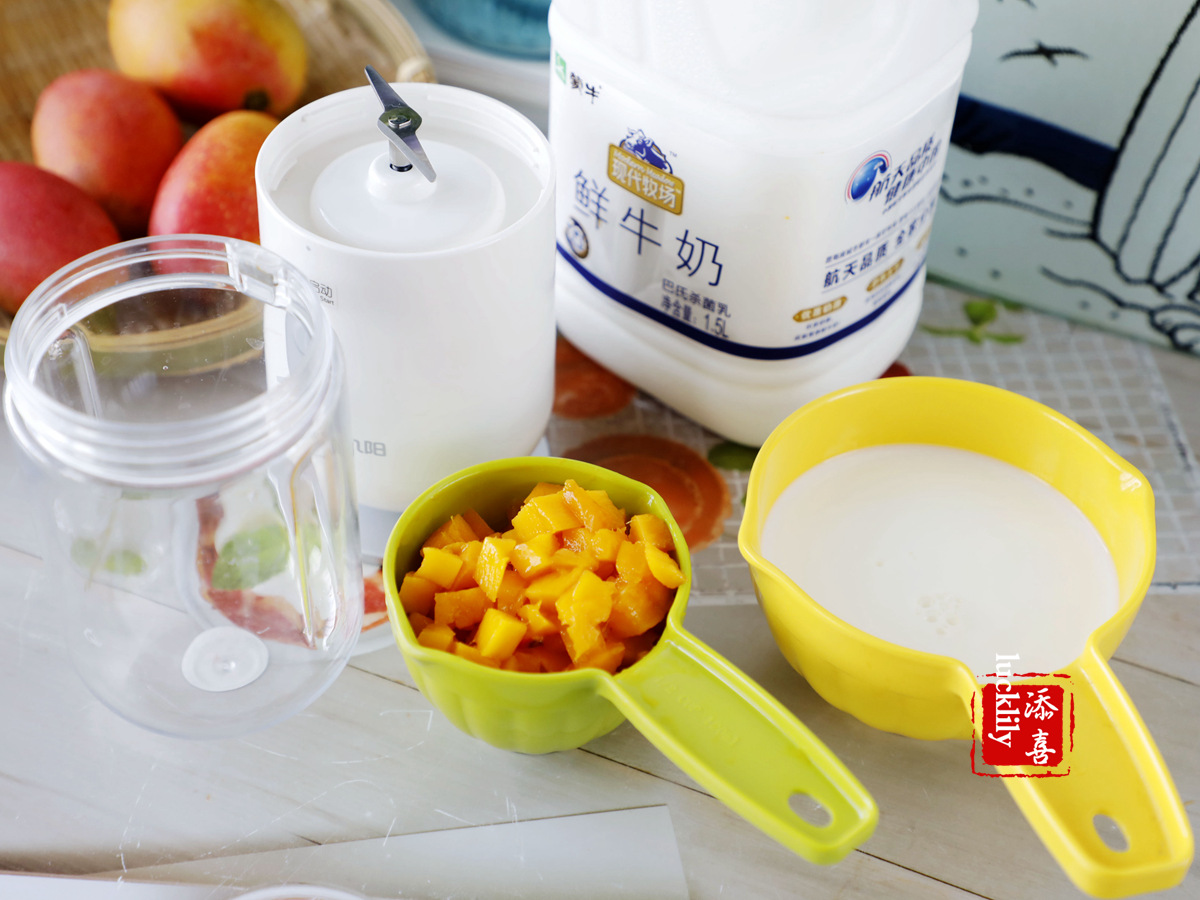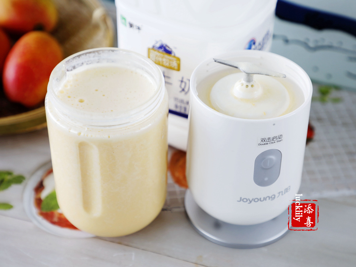 芒果含糖量高,所以这芒果奶昔制作的过程中可以不加糖。(图/文:@添喜lucklily)