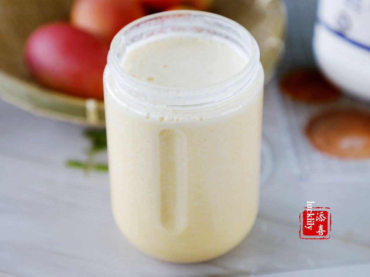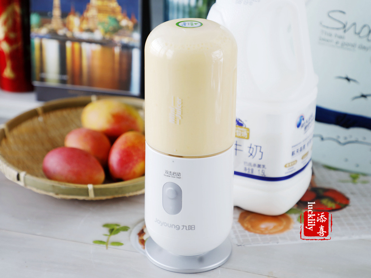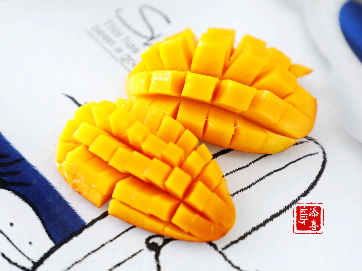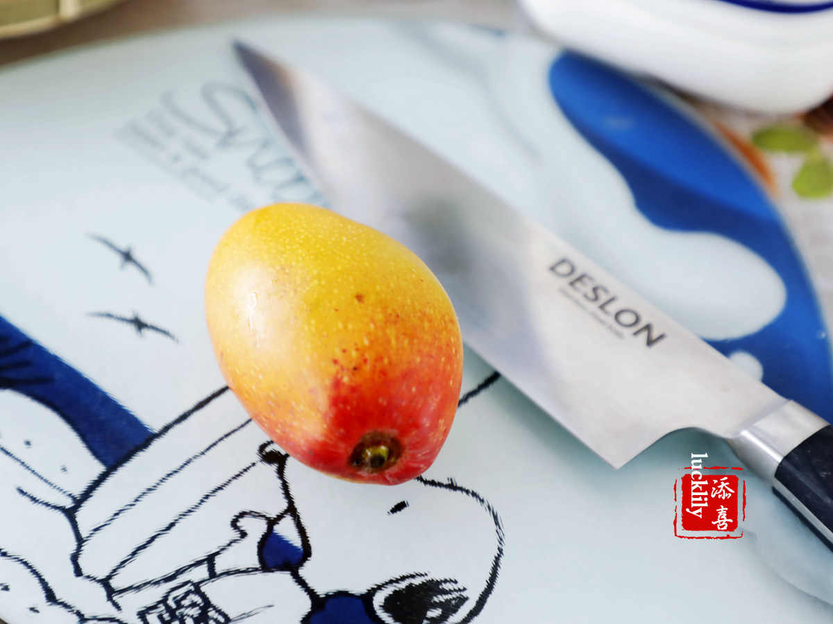 芒果含糖量高,所以这芒果奶昔制作的过程中可以不加糖。(图/文:@添喜lucklily)