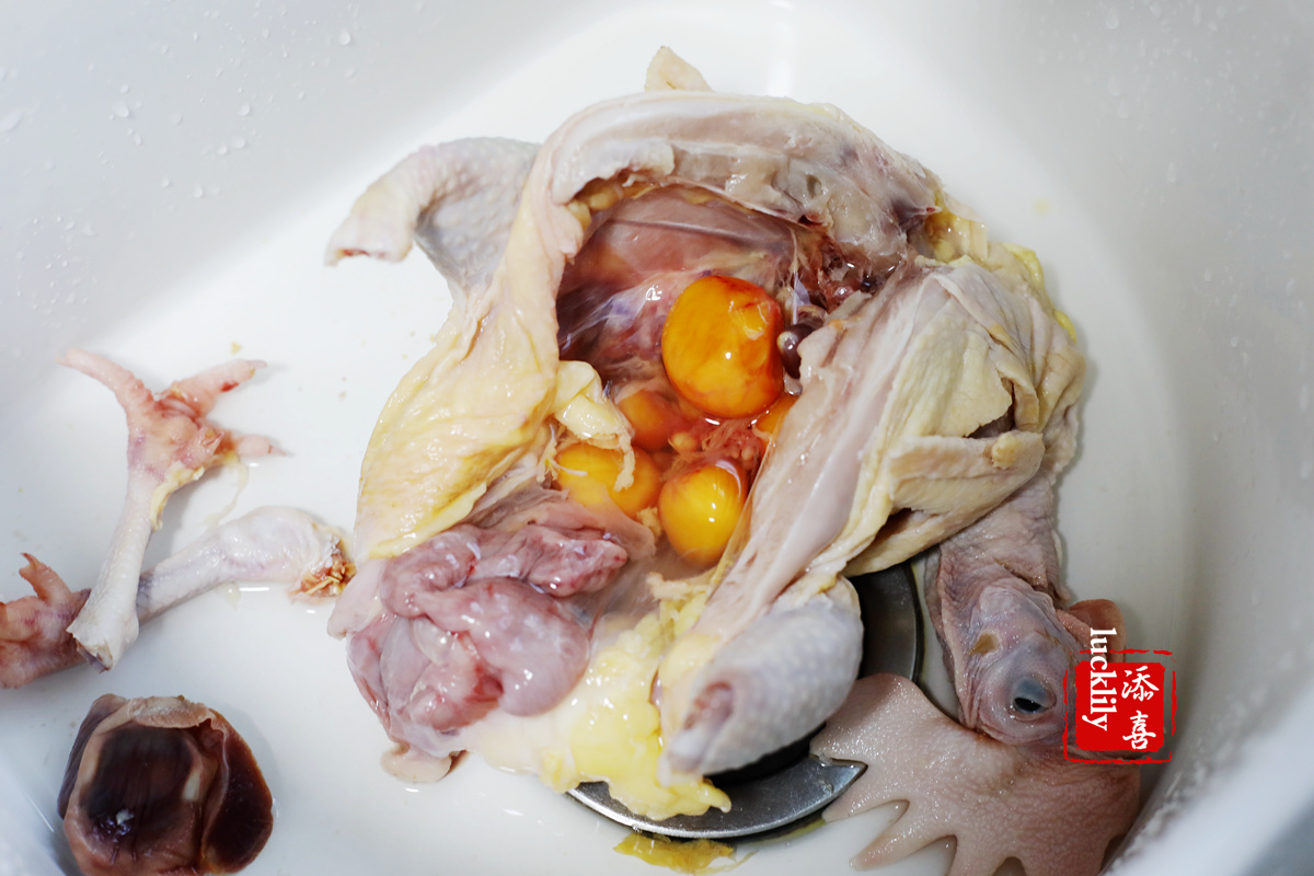 取冰鲜老母鸡一只,因为杭州市场上不允许销售活禽,所以买的都是冰鲜的,商家帮忙打理得挺干净,自己再稍加清理就可以了。