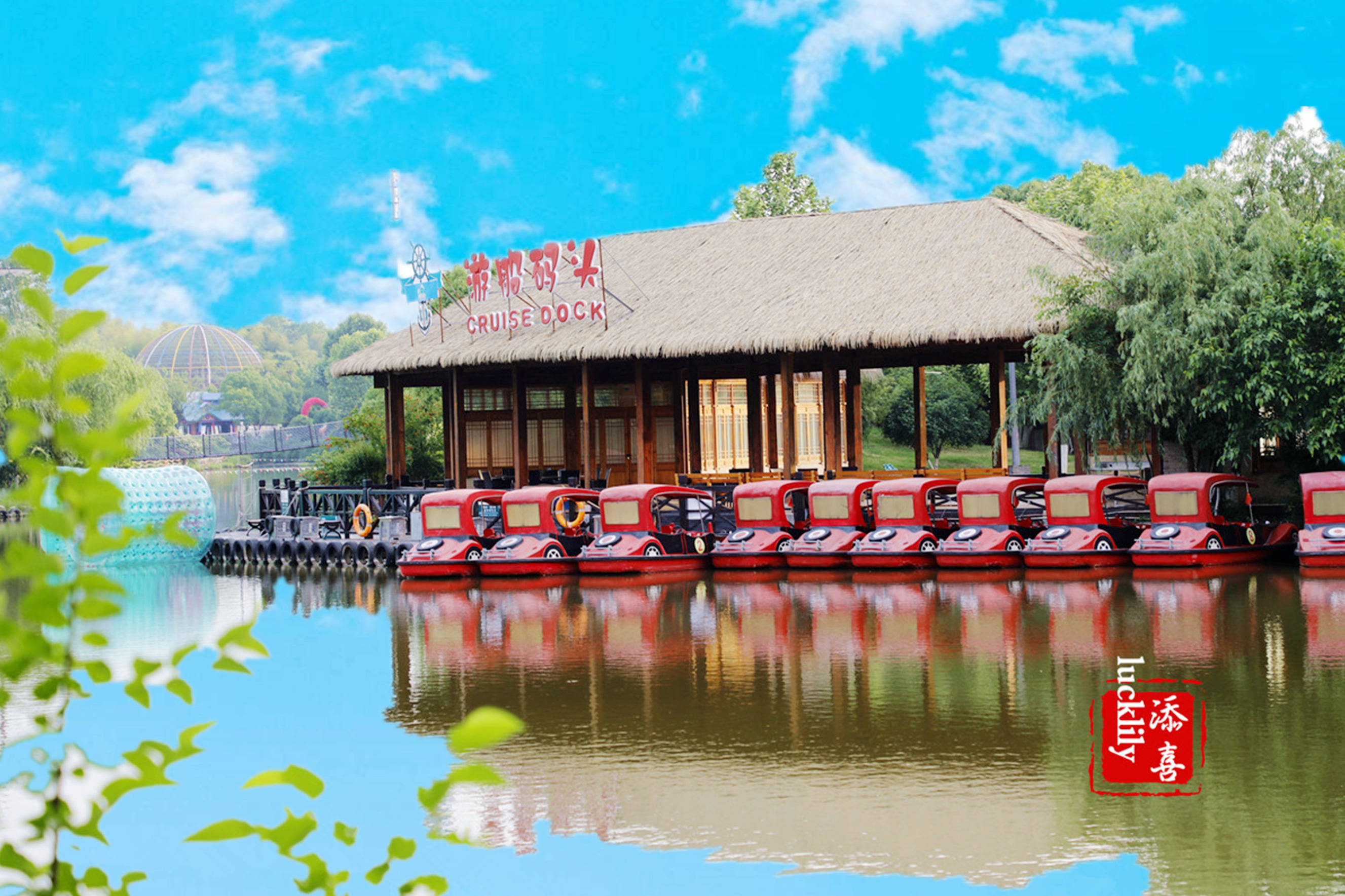 田园嘉乐比景区内的水上游乐项目很丰富,各种类型的水上三轮车、电动船、脚踏船,还有水上碰碰船都很值得一试。