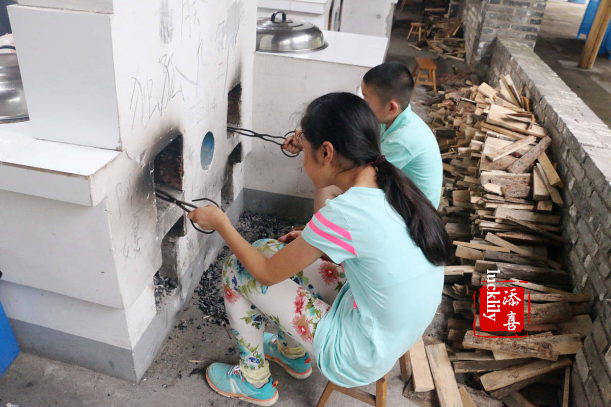 傍晚17:00虽然乐园关门了,但是土灶体验区还是可以继续使用的。一灶一桌一长溜排开,想像要是全部开伙,那阵仗可以是不是可以挑战吉尼斯长灶宴之最了。我们这次共16个人出游,小朋友们听说自己可以生火做饭,表现最为积极。原来升火是有套路的,幸好有农村长大的牛哥在,有经验,先找竹子做火引子,点燃后再将木块烧着。上课学习要都是这样的玩法,小朋友们不要太自觉哦!叔们、姨们感觉都回归到了童年里!
