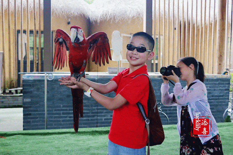 在田园嘉乐比景区中有一个亲子动物园,在这里,小朋友们可以跟小动物们零距离接触互动,甚至还有一个高空十几米高的大鸟笼,小朋友可以自己到鸟笼里面去给鸟儿们喂食,这种体验的机会真是非常少的,相当的有诱惑力。