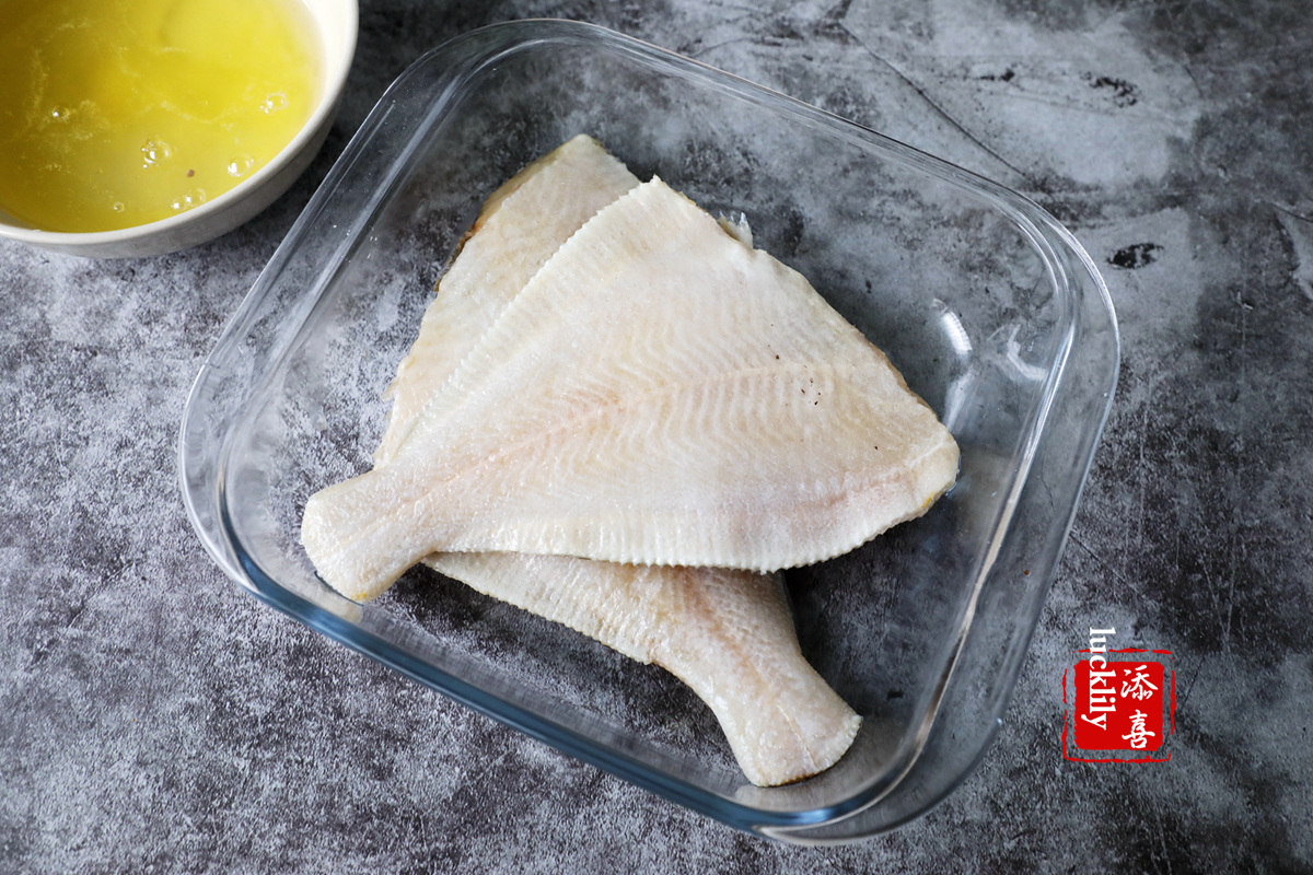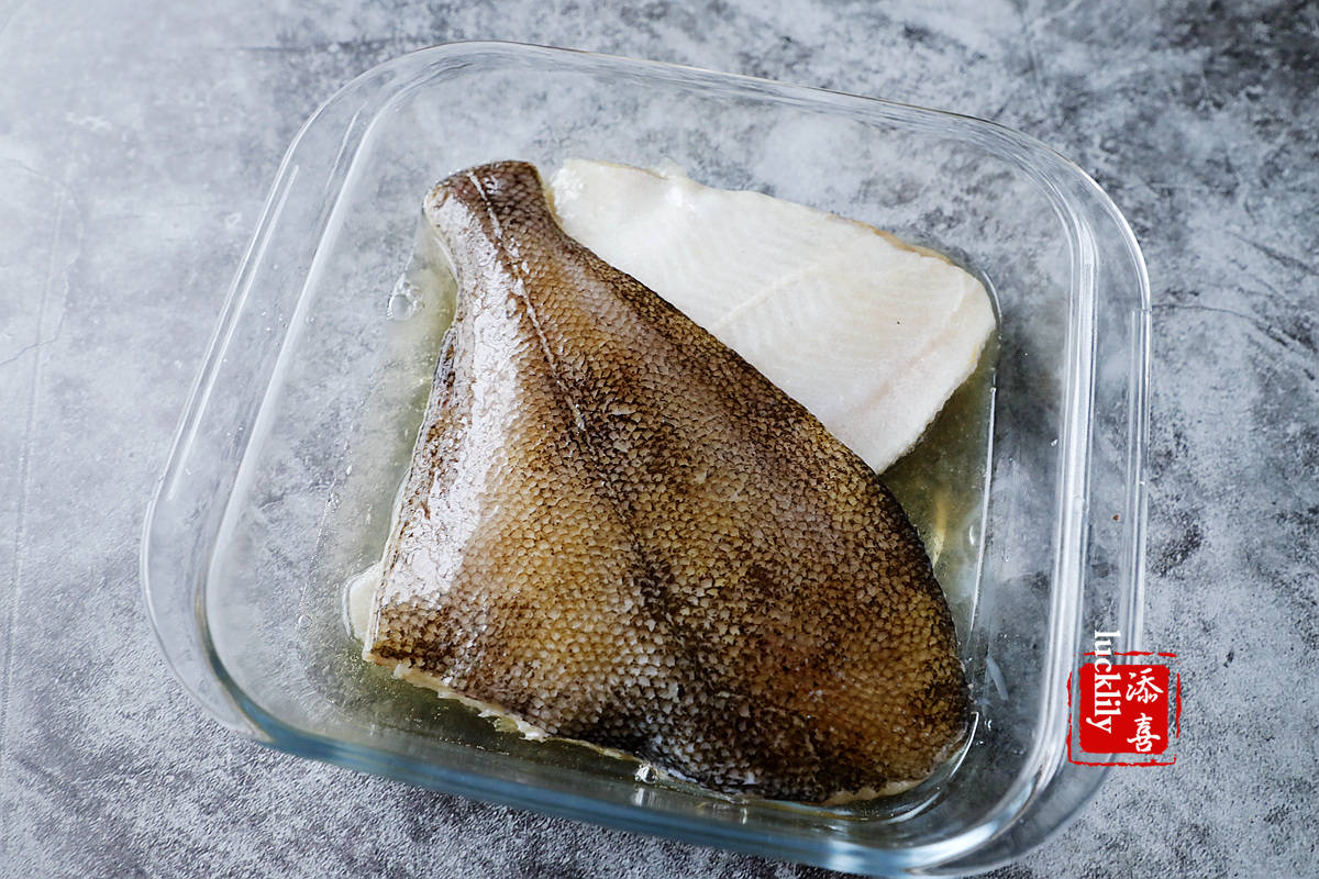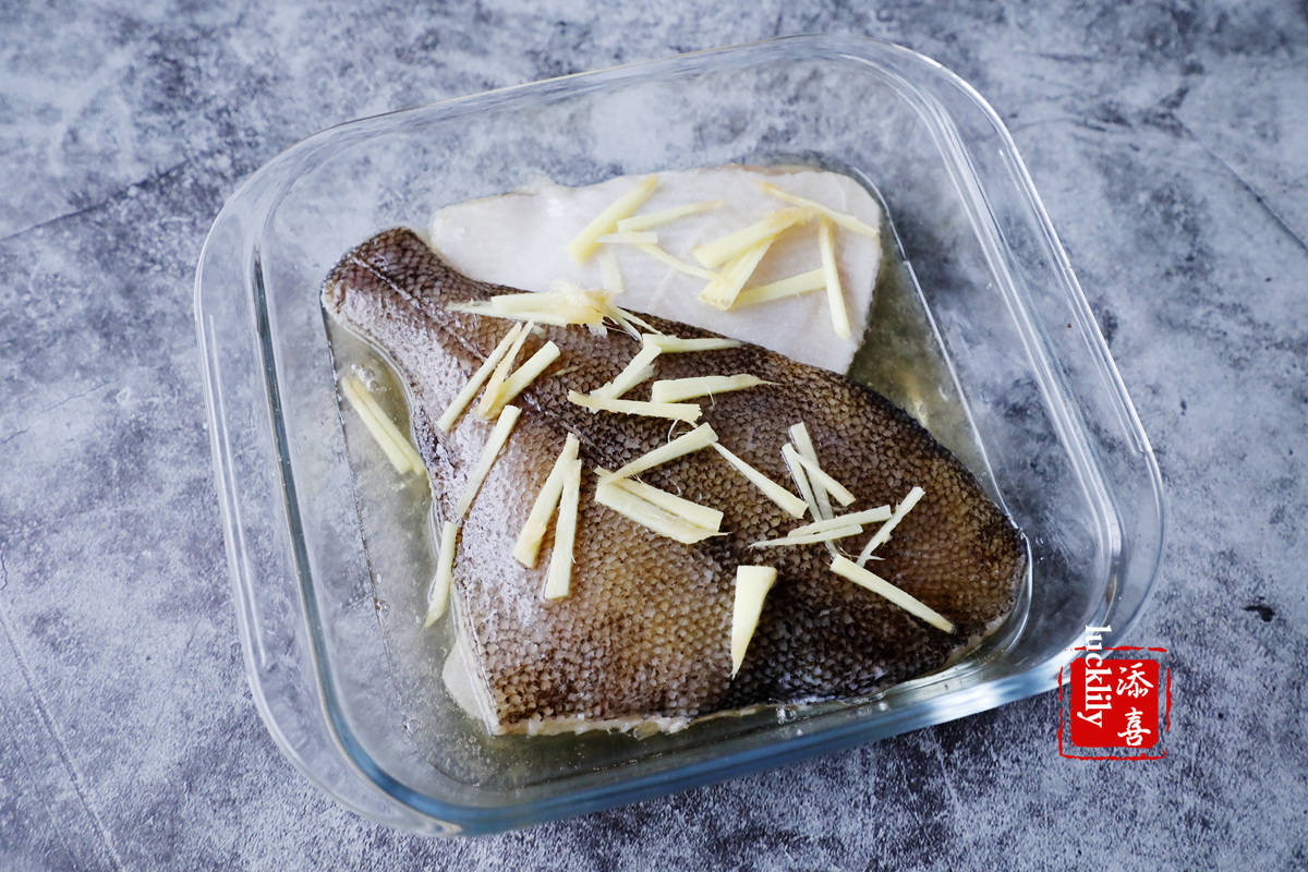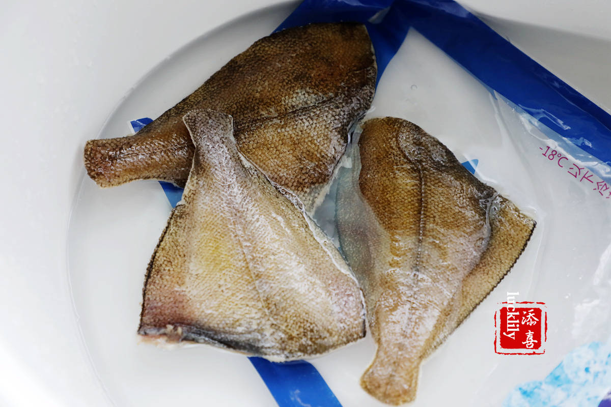 对于蝶鱼的料理,可以是很简单的清蒸葱油,我们先将鱼块放入清水中自然解冻;