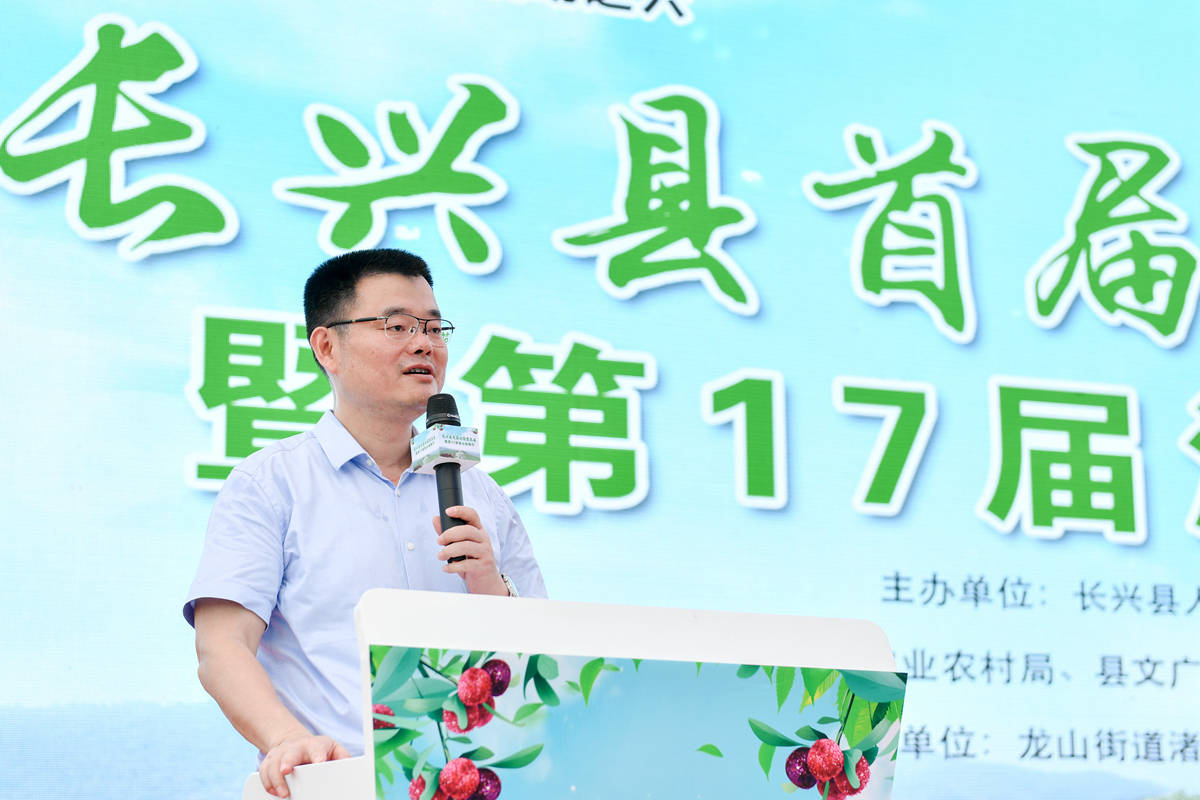 开幕式上,周卫兵向来宾推荐长兴杨梅和田园农产品。他说,六月杨梅满山红,长兴是杨梅之乡,目前投产面积达1.4万亩。其中渚山杨梅栽培历史悠久,果品味甜爽口,种植面积达3800亩,是浙北地区最大的优质无公害杨梅生产基地。从2004年至今,渚山杨梅节已连续举办了17届,效果越办越好、名气越办越响,带动了一方经济,富裕了一方百姓。今年以来,省市农业部门先后十余次到长兴开展“三联三送三落实”活动,指导支持村民建起了标准化、绿色化、一体化的杨梅产业园,打造了一条美丽乡村休闲旅游精品线。渚山村民更是以梅兴业、以梅增收,将小杨梅做成了大产业,找到了实现全面小康的致富路,21户低收入农户通过杨梅等产业增收万余元。