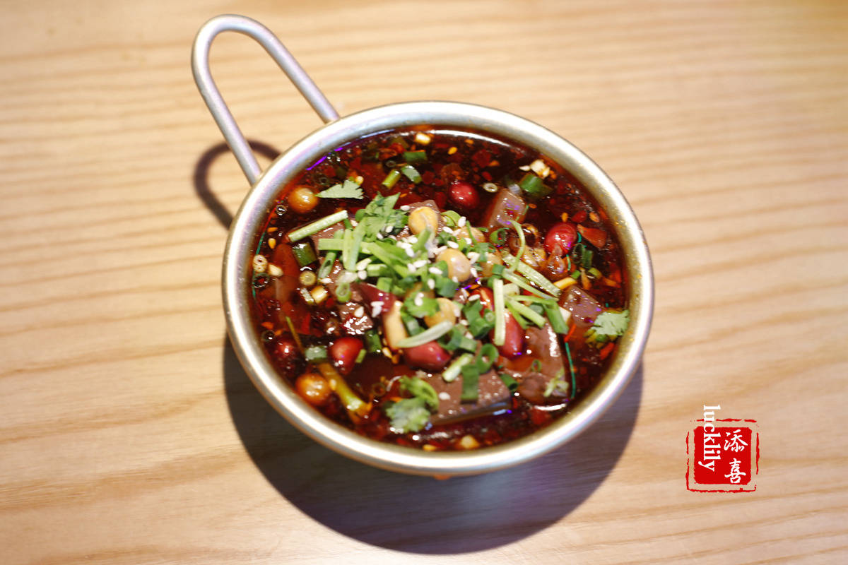 真心鸭血,上桌时带着十足的炙热,每一块的口感十分的香滑,辣得开胃。