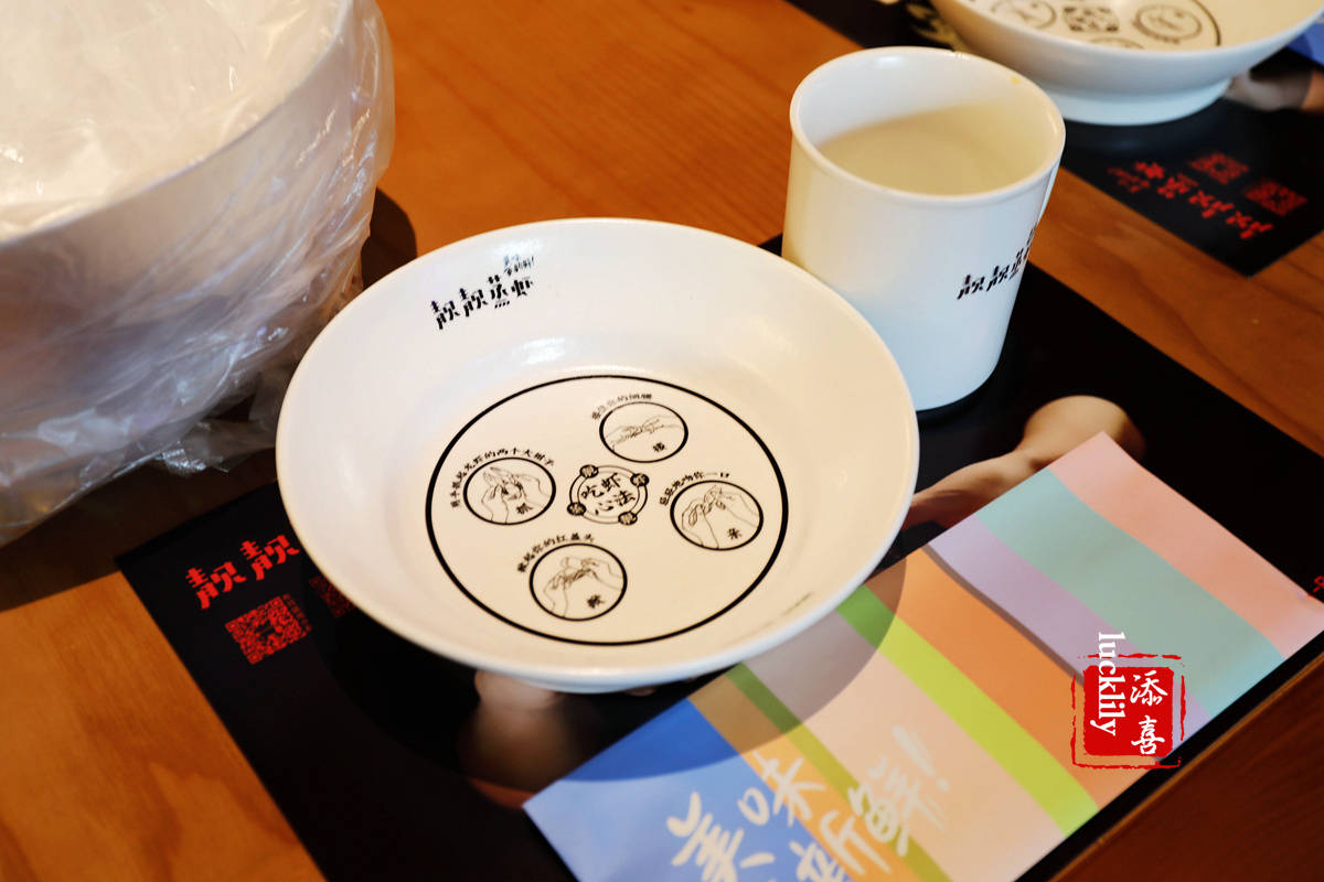 敞阔的八仙桌,舒适的太师椅,融合了现代风的设计,碗碟都是采用了自家的CP,炫彩信封里的是高品质的医用型塑胶手套、竹筷、湿巾,调皮而生动的色调令人很减负。