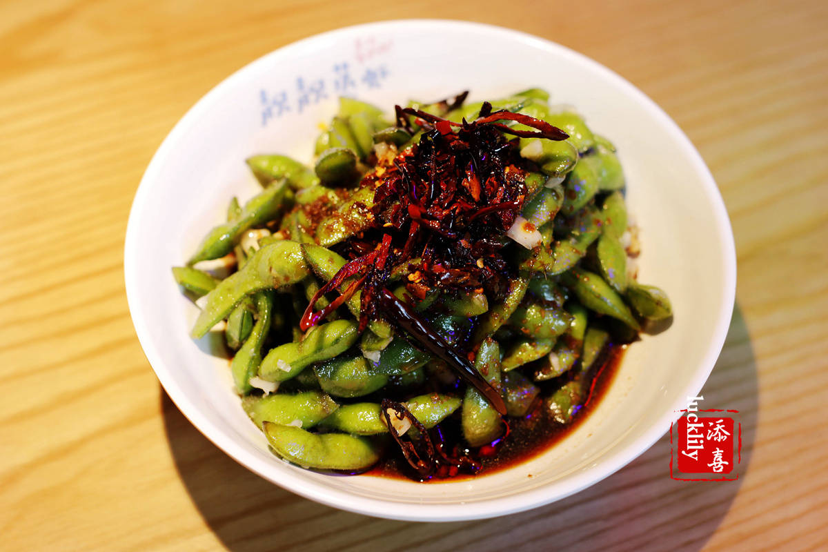 脆爽凉拌毛豆,毛豆当然是一样的毛豆,选的更青嫩新鲜一些,酱汁的味道就非常的特别,有着独特的椒麻和香棤的味道,还有点甜,确切的说,吃了想吮指的那种。