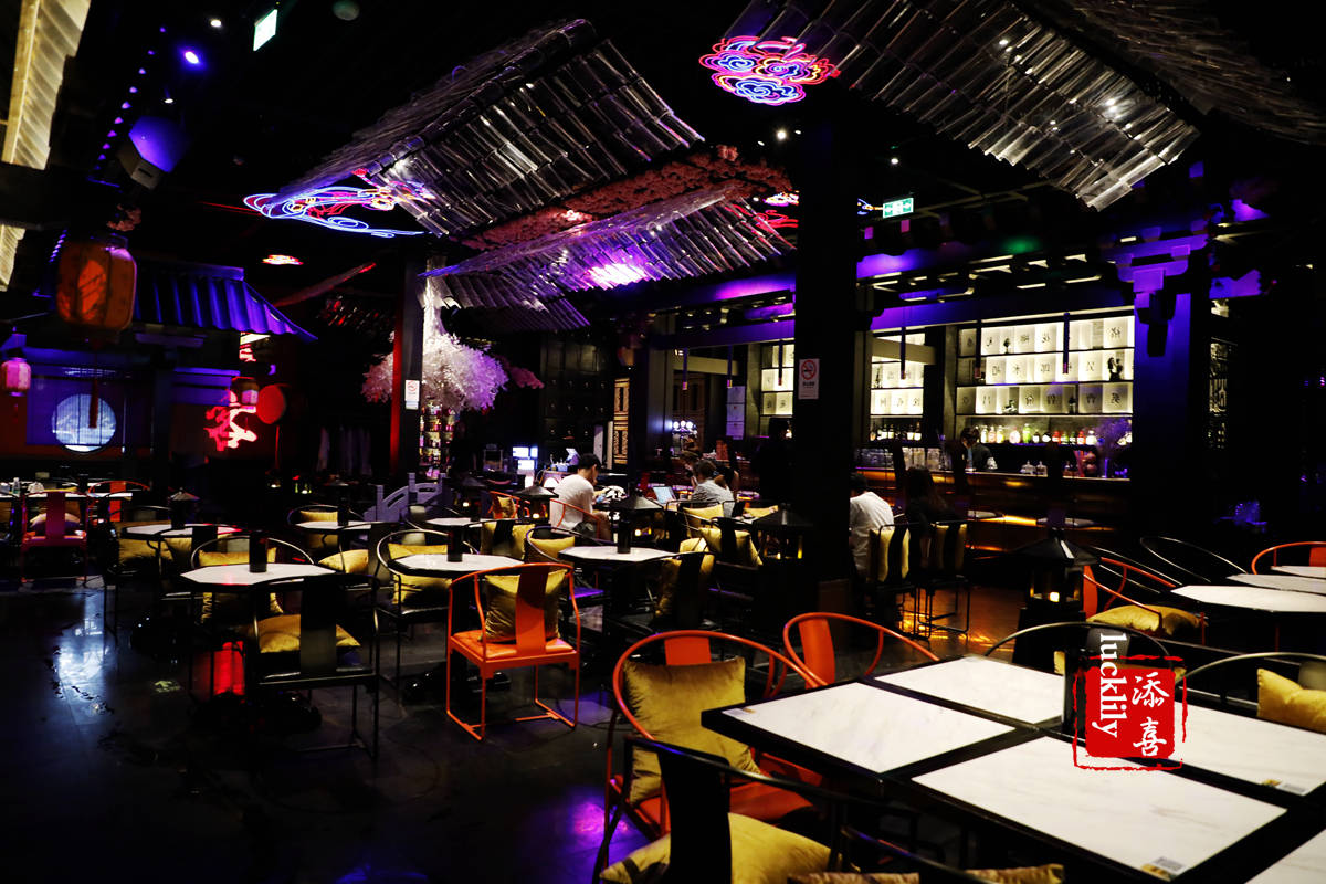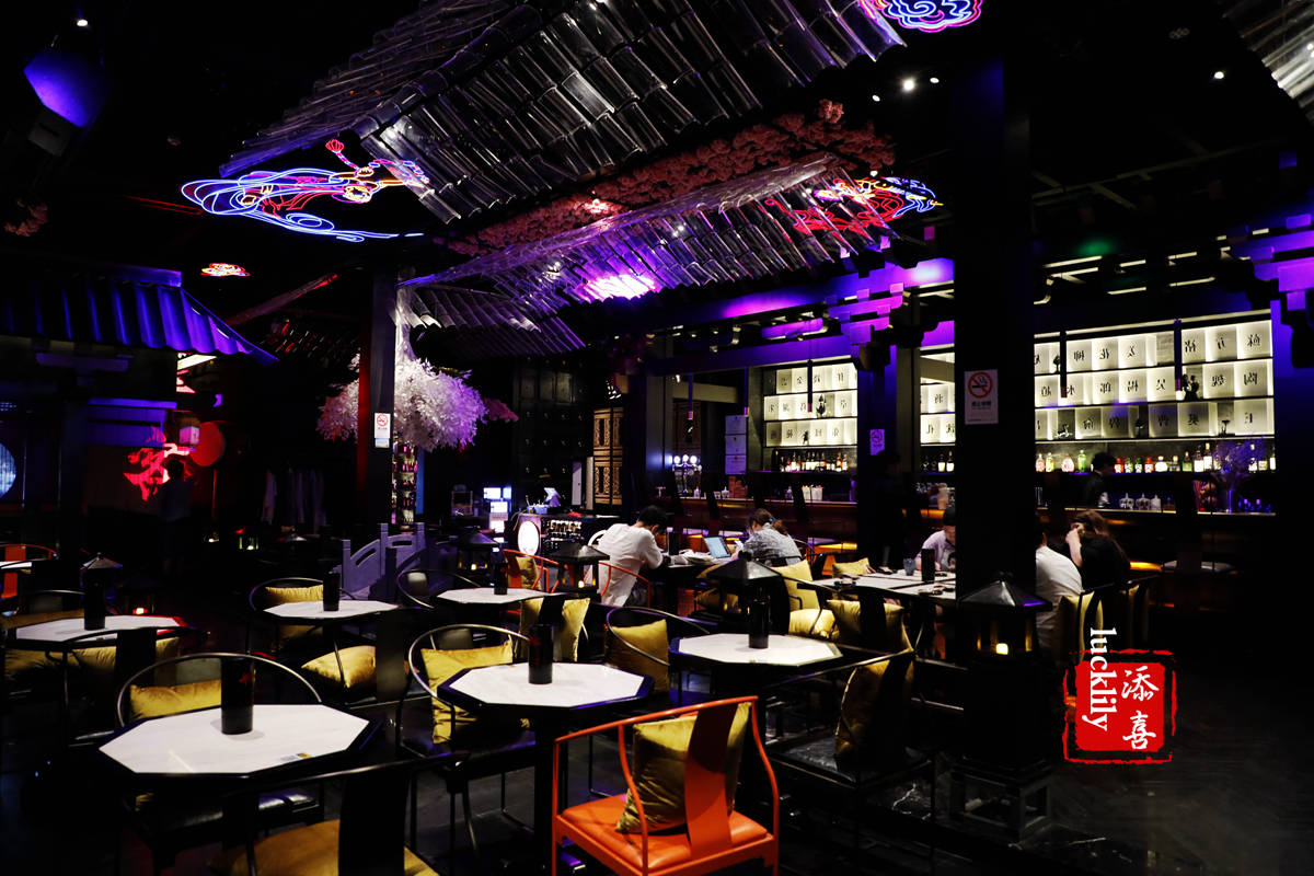 餐厅的画风真的是令人耳目一新,闹市中心玩起了穿越!水晶砖瓦、桥梁斗拱、铁艺高椅……复古韵味与现代工业美妙融合,迷幻的如同仙境。