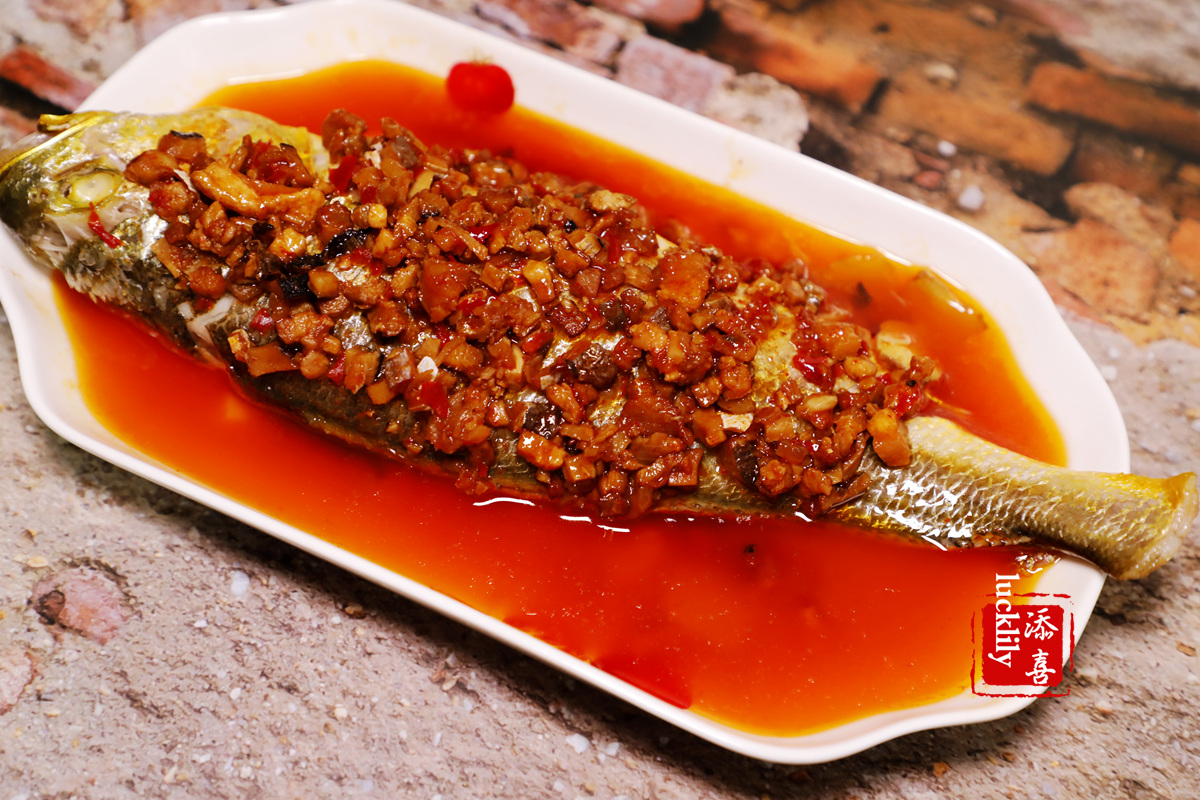 家烧黄鱼,是我儿时的味道,印象中的黄鱼就是鲜的代名词之一,祖母或是母亲都喜欢用雪菜来烧黄鱼,这黄鱼的烧法到了传到了我这里,到也是多变了起来,这一次用到的是香格里拉八宝鱼鲞酱更是新鲜了。