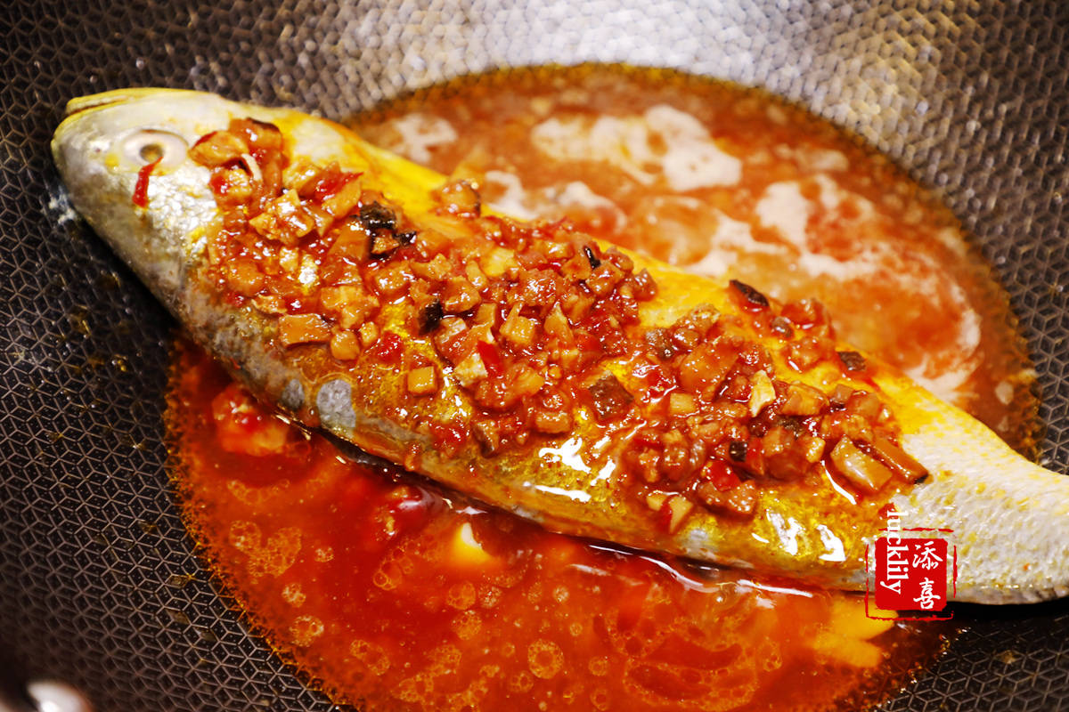 关火后装盘即成,不用加其他调料,这道宝鱼鲞酱家烧黄鱼的口感鲜美、微辣,营养丰富还超级下饭。(图/文:添喜lucklily)