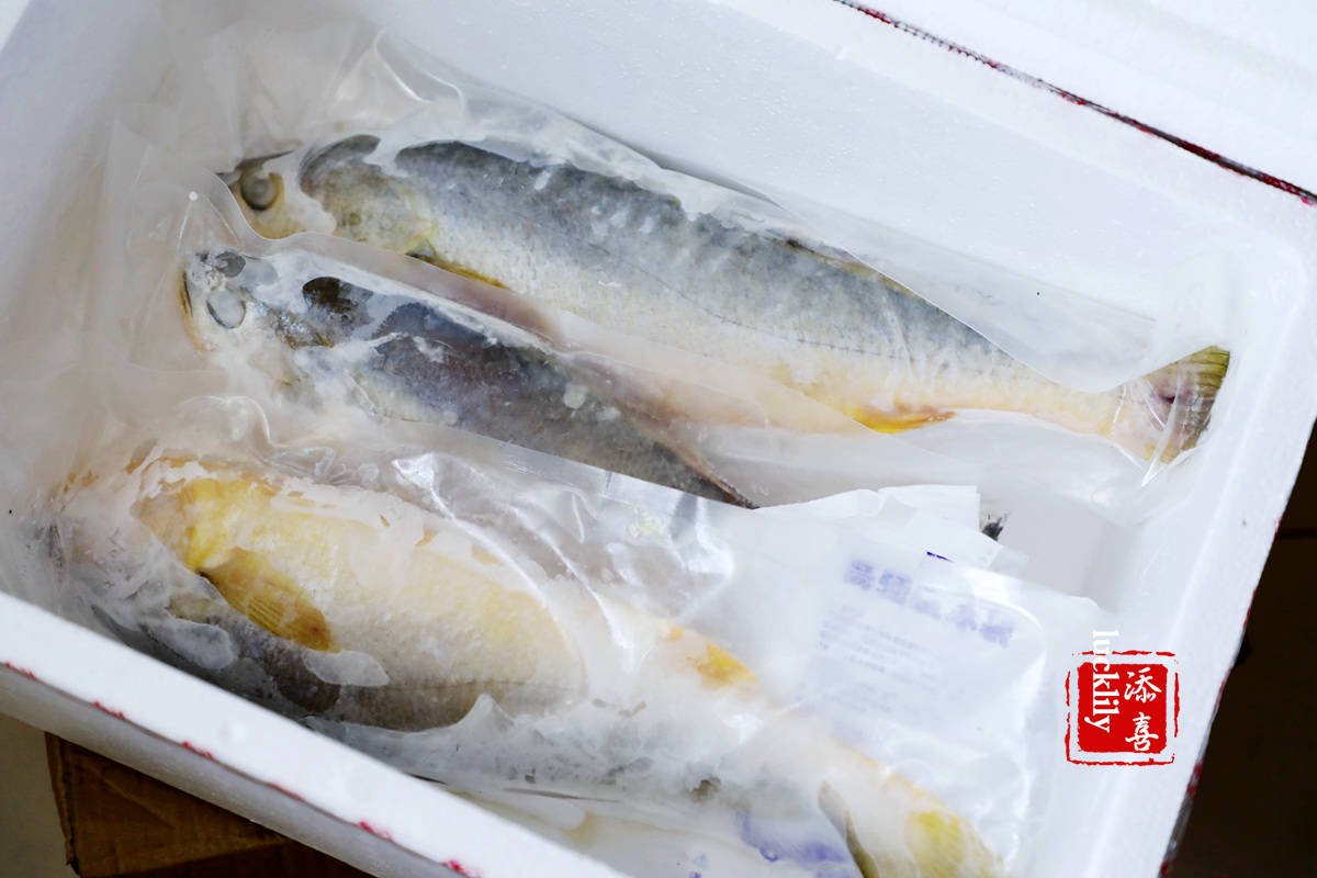 添喜有个好兄弟在台州做海鲜生意,所以占了不少光,家里常年都有不断的鲜货,这不开渔季一到,顺丰的冷链急送也就到家了,三家新鲜的黄鱼,瞅着模样儿就喜欢。