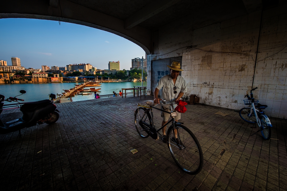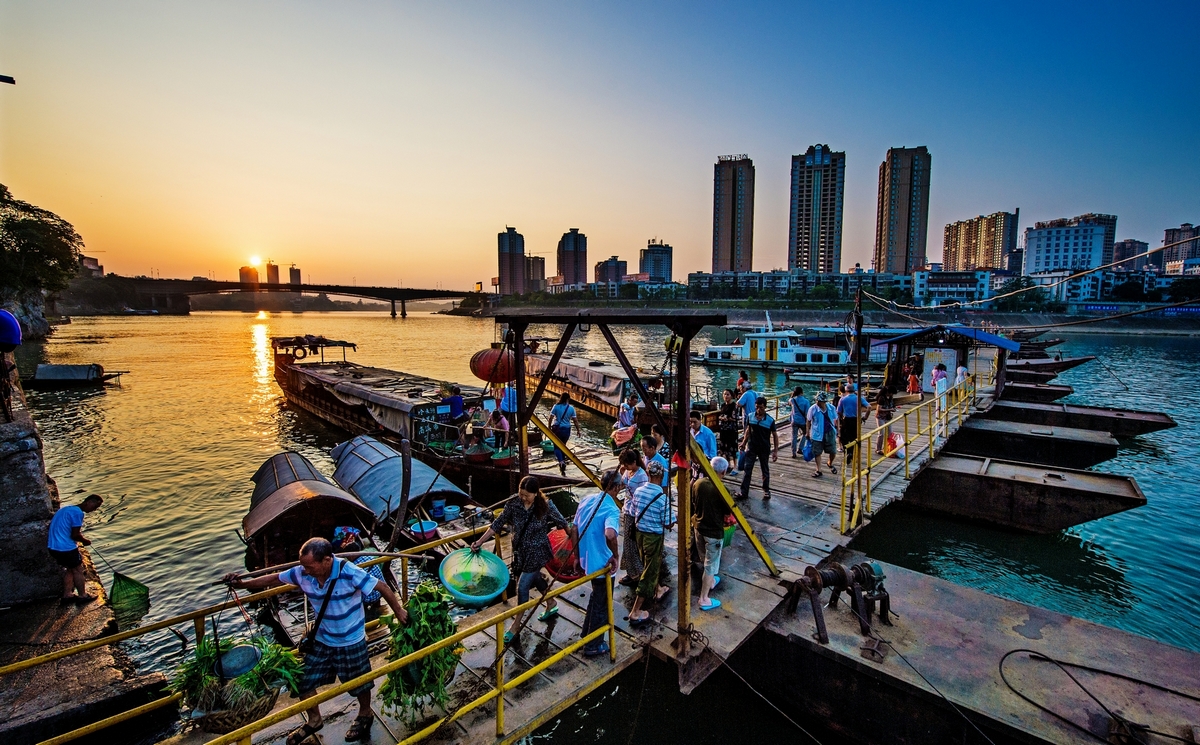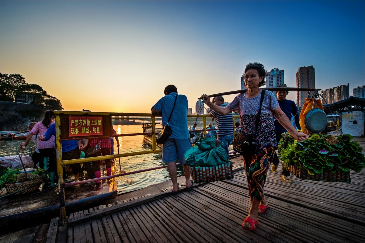 浮桥是一个城市的活化石,它见证着一个城市发展的历程,可以说二十年前的中国,每个城市都有浮桥的身影,桥上车水马龙,人群熙熙攘攘热闹非凡。但随着社会的发展,浮桥已被现代桥梁所取代,大都城市已难觅真容。永州的浮桥,没人能说得清楚建于何年,有人说有城就有桥,有人又说没城就有桥了,就象鸡与鸡蛋的故事,没人说得清,我们就况且她建城2100年就有吧。早上5点,我就来到了浮桥,拍下了苏醒的永州和勤劳的永州人民。