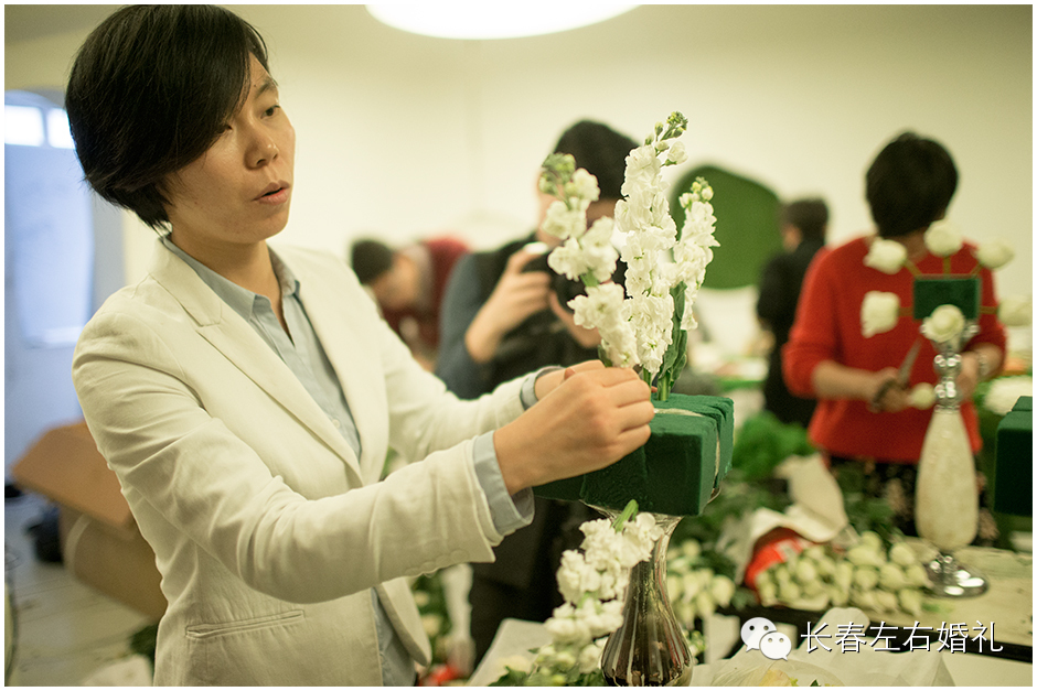 左右婚礼为了这次课程专程采购新鲜进口花材,由张大师亲自教授学员从了解识别花材,到各类手捧制作。