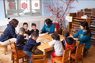 班里的老师越少,孩子们越容易学会自立。他们会学会向班里的其他孩子求助。孩子们知道班里哪个小朋友拼写或写作好,哪个小朋友的美术好,孩子们会在需要帮助的时候向这些孩子求助。年纪小一点的孩子可能需要帮助才能够到架子上的纸张,或者完成一项工作。孩子们在自由宽松的环境下往往会更努力地自主解决问题。一方面,他们知道自己有充足的时间去自主解决问题,另一方面,他们也坚信老师永远都是他们坚实的后盾,会无条件地满足他们的不时之需。