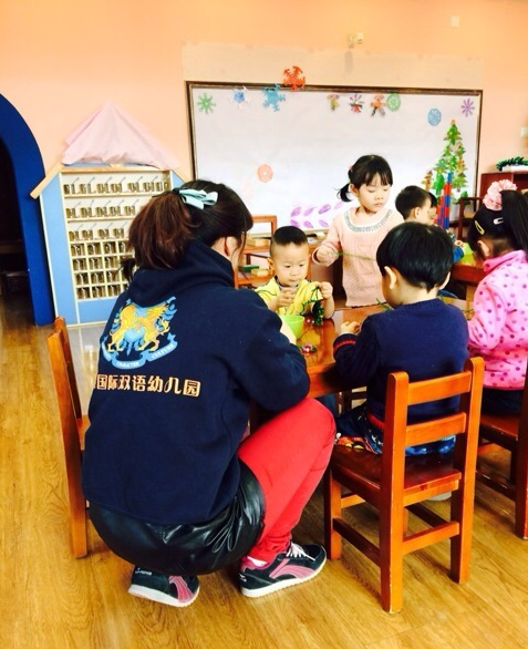 我记得当初参观幼儿园的时候,黄园长就介绍,在伊顿我们想让每个孩子都觉得他是平等的。老师们用蹲下的方式换来跟孩子们平等的交流,这点我被感动了,因为有个小朋友过来问我怎么做,我也尝试着蹲着解答,结果发现真的好累,蹲一会就觉得腿有点麻麻的,酸疼。我只是蹲这么一会,就已经酸疼,老师们天天都要这样对待孩子们,这是何等的辛苦,其实我们有时候可能不会理解老师,觉得我交钱把孩子送来,你就应该给我们教育好,看好孩子。