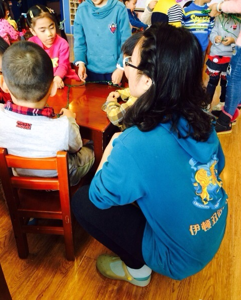 孩子们很认真的在做着手里的小手工,我呢,在观察细节,我承认我是一个喜欢洞察细节的人,我觉得只有细节之处才能彰显事情的本质,这时我发现一个小细节,班里老师在回答孩子们提出问题或者寻求老师帮助的时候都是蹲着的对待孩子的,不管时间长或者短,老师们一直都是蹲着帮助孩子。