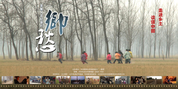 长篇多集纪录片《乡愁》是一部反映当下中国乡村留守儿童和中国农民生存现状的作品,也是献给中国九亿农民的作品,更是 献给六千四百万农村留守儿童的作品。该片创作历时近四年,创作者把镜头对准河南省民权县花园乡的吴老家村,通过跟踪拍摄村庄里的留守儿童和他们家庭的故 事,将孩子们的留守生活与父母在城市的打拼生活相互交织,既忠实地记录了这个村庄一年四季的农事农情,乡村父老的欢乐哀愁;也真切地表现了他乡与故乡的对 话、城市与乡村的碰撞、故乡的温暖与苍凉、现实的无奈与彷徨。
