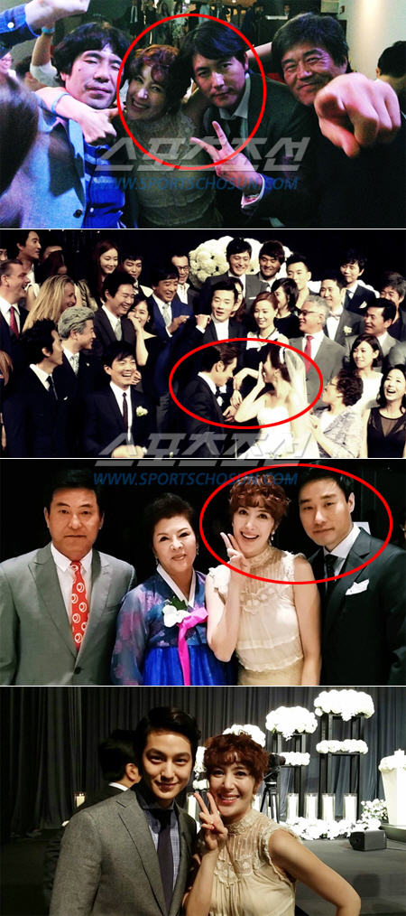 또 다른 사진에는 하객으로 온 김범, 이한위가 이은희와 다정하게 포즈를 취하고 있는 모습이 담겨 있다. 또한 이은희는 미모의 어머니와 훈남 남편의 모습도 공개해 눈길을 끌었다.
