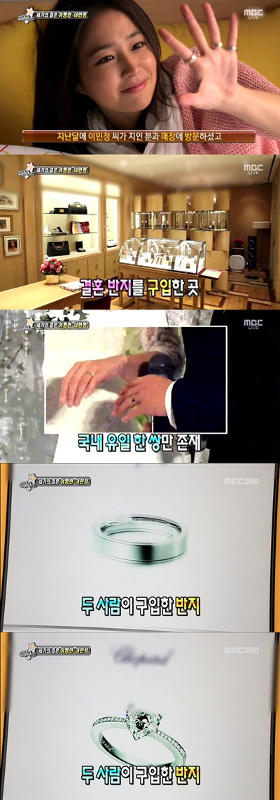 이병헌-이민정의 결혼반지는 국내 유일하게 한 쌍만 존재하는 구하기 힘든 제품이라 더욱 눈길을 끌었다.