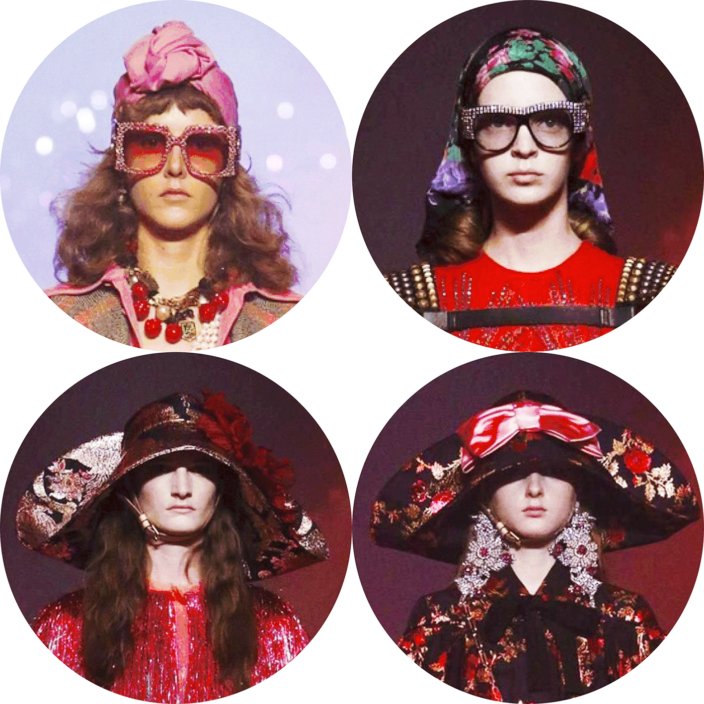 让我们再一次“重”头看起,Gucci女孩简直为你亲身示范了怎么打扮才显脸小,不管是把头发藏到墨镜里还是超大的帽子和蓬蓬的头发,都在视觉上变身小脸菇凉
