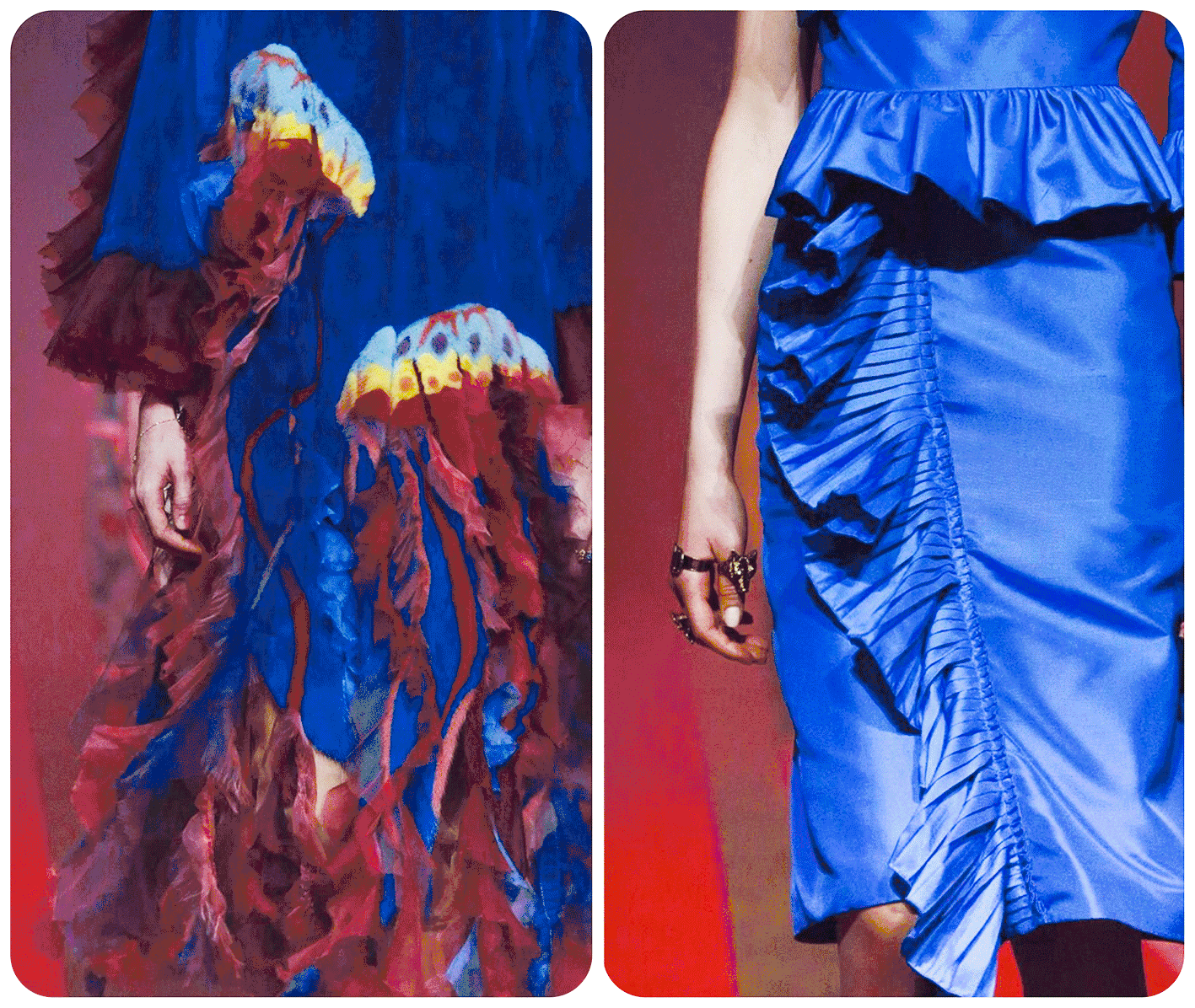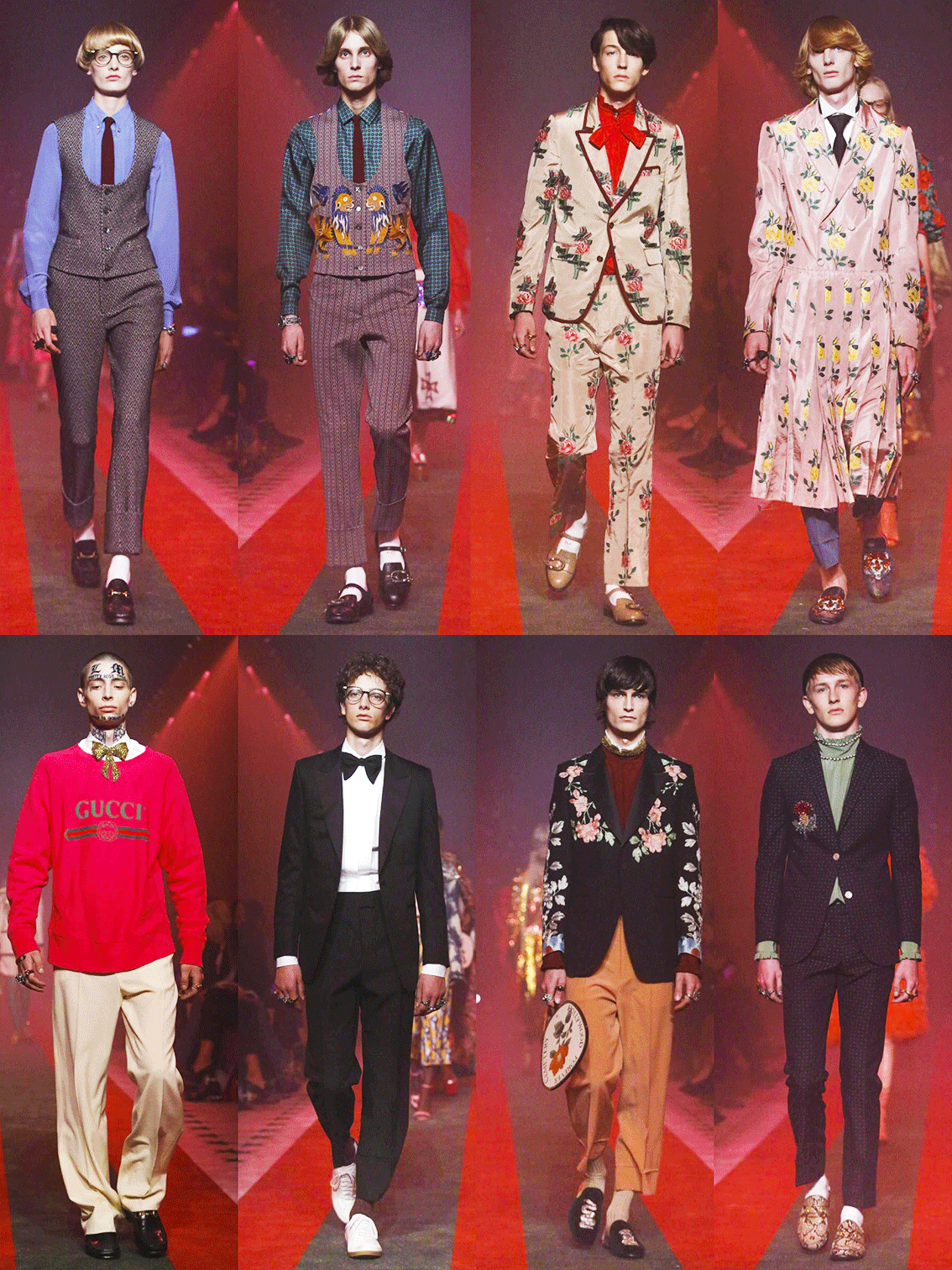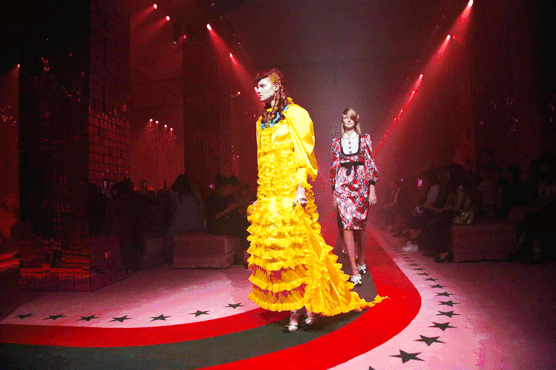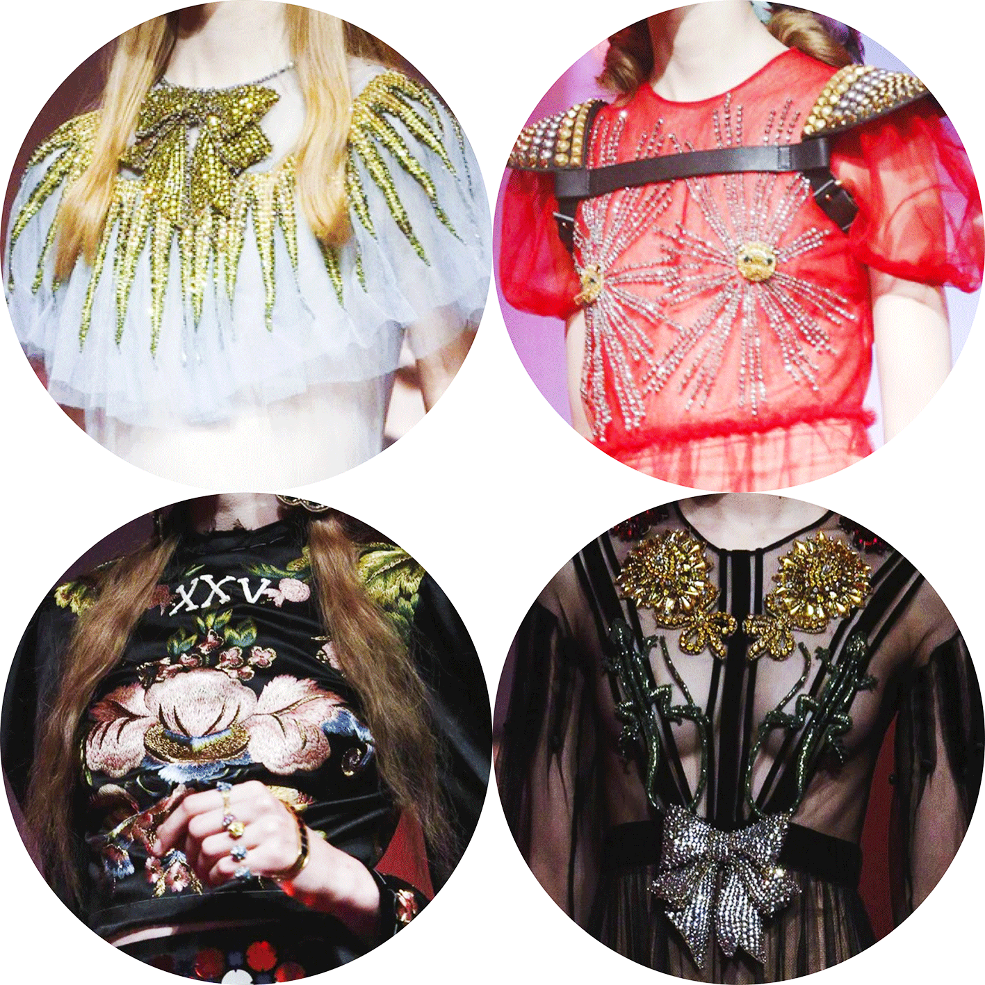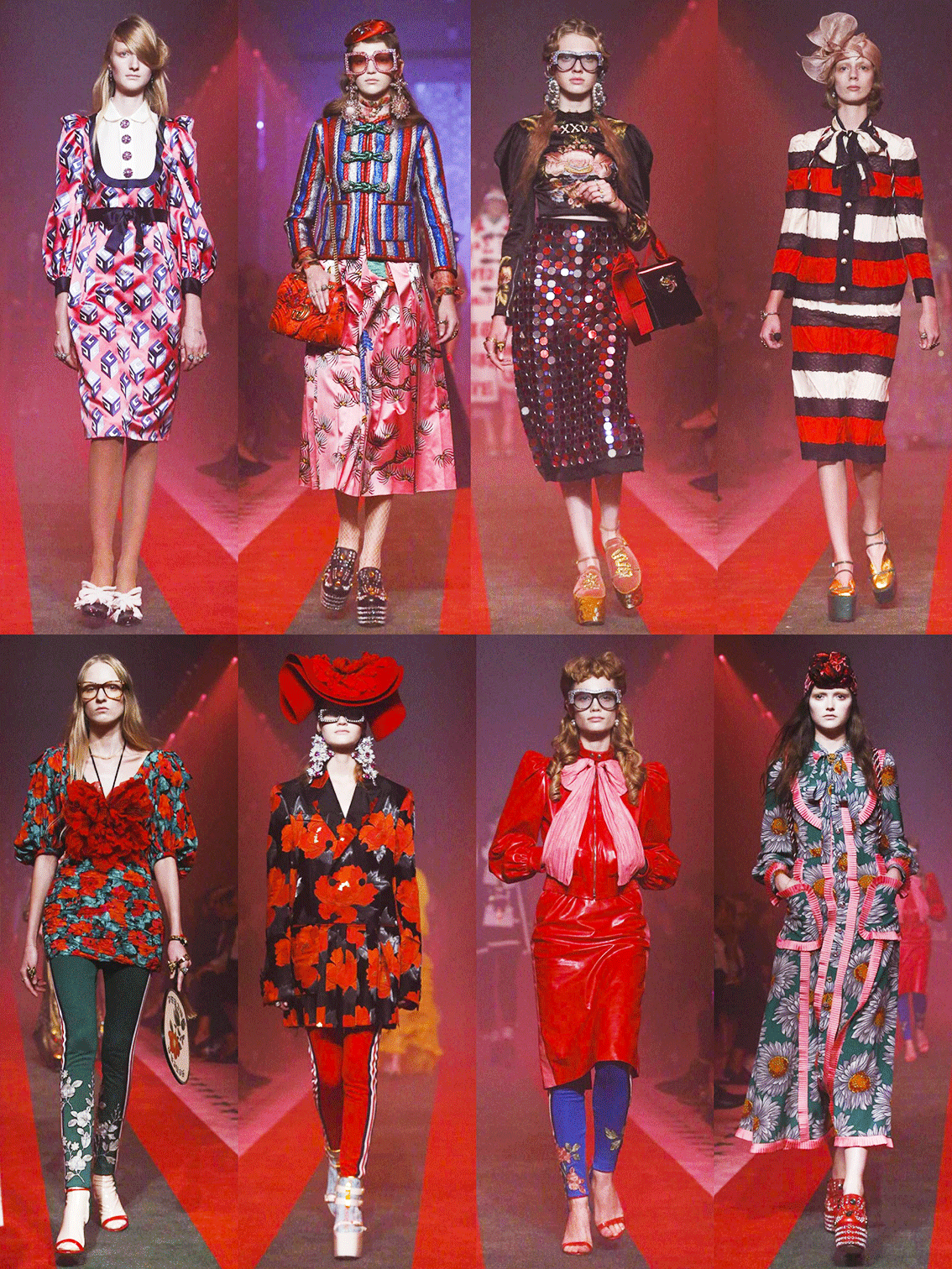 Alessandro Michele在探索异域风情的道路上渐行渐远,欧洲文艺复兴服装范式、中国古典清宫服饰元素、甚至是现代服装廓形和设计细节都大杂烩般丰富地呈现在这一季的Gucci女装系列中。