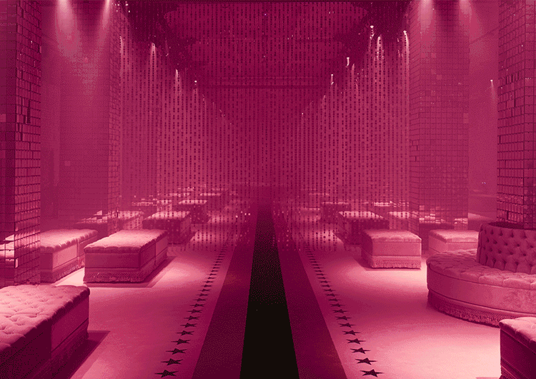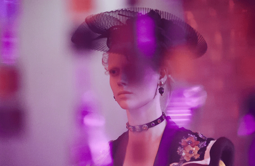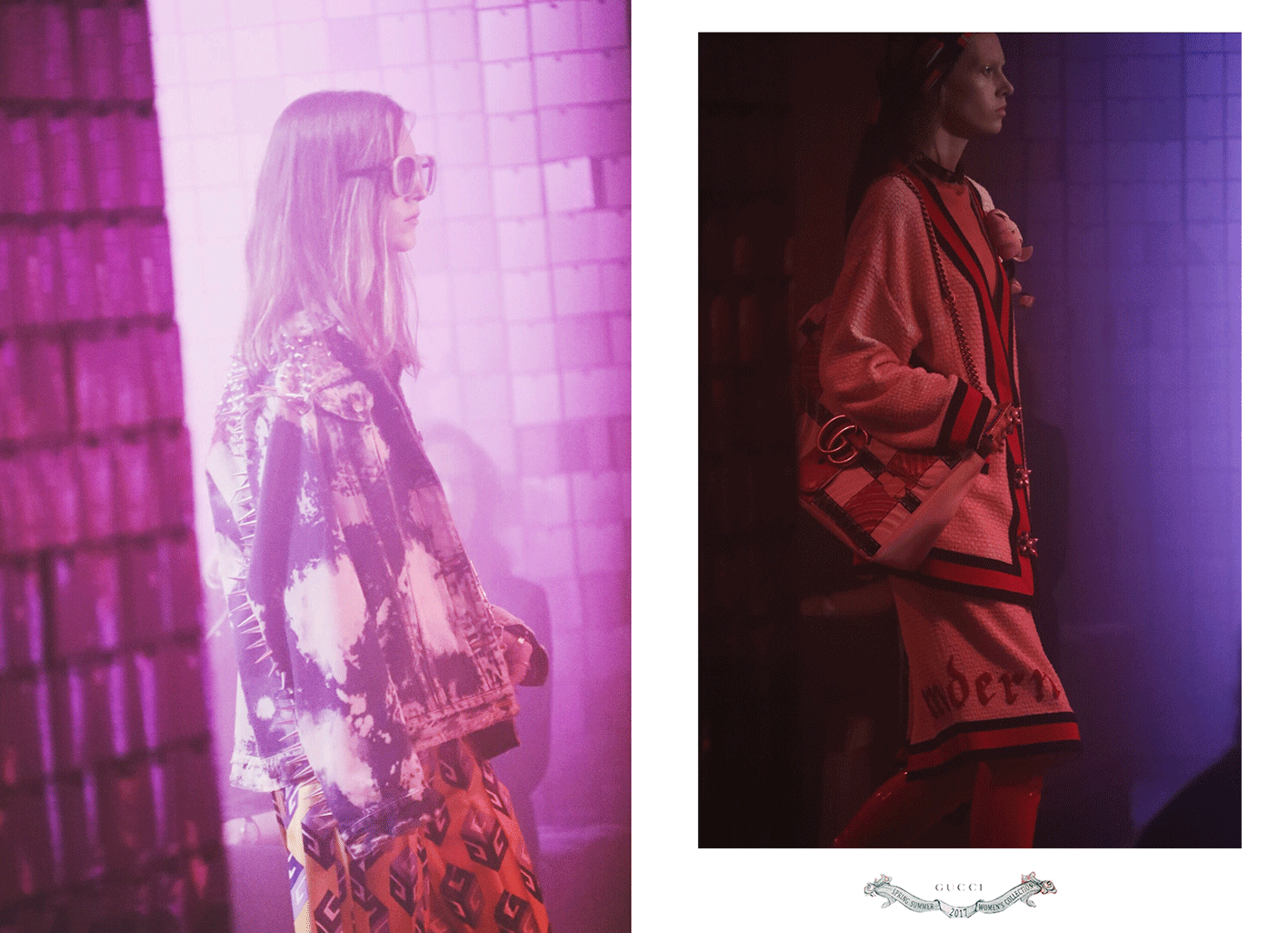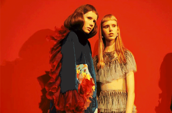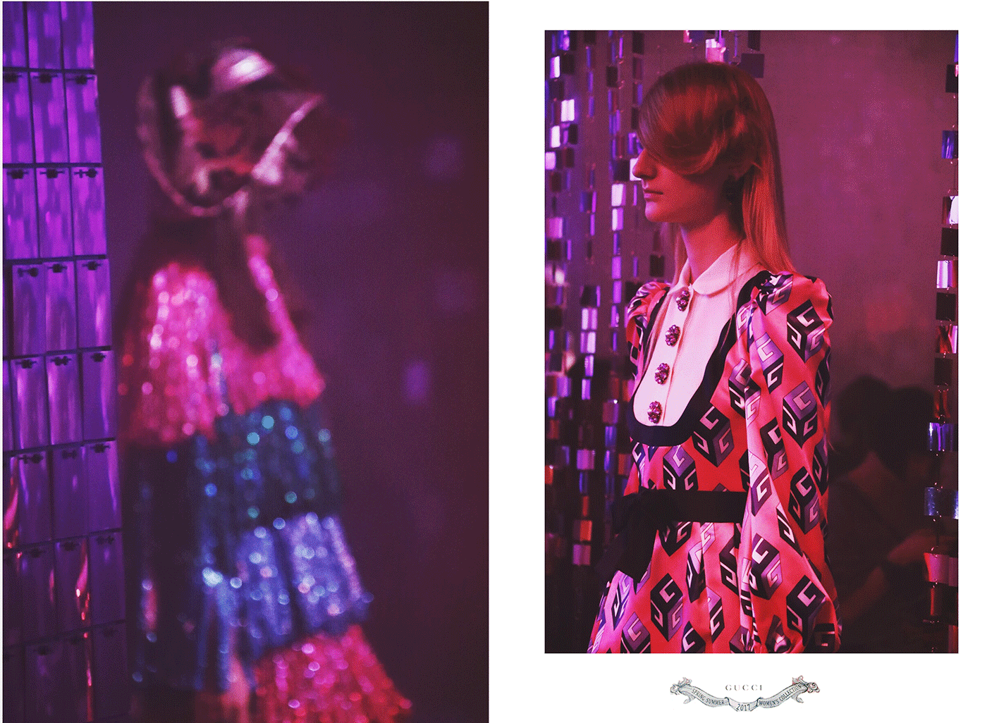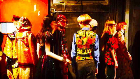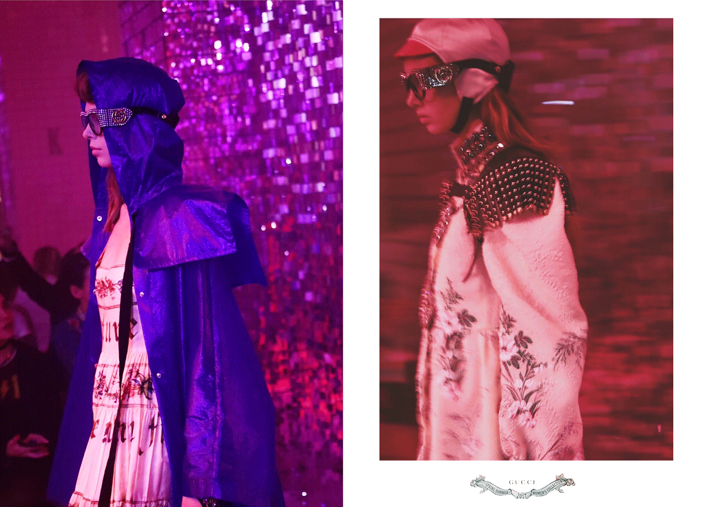粉色的秀场烟雾缭绕,低沉的音乐伴着少女的诗歌旁白,Gucci的秀场显出略带异教感的宗教氛围,安静中也有躁动。