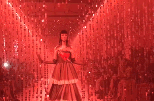 如果你沉浸在粉色环绕的现场氛围无法自拔,后台鲜艳的红色背景墙也一定能让你长久逗留不想离开。秀场后台模特们一个个像张开翅膀的复古花蝴蝶聚集在红墙前,搔首弄姿,争奇斗艳,每一个超模都美得不要不要的!