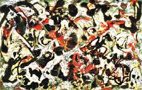 1946年波洛克已经彻底抛弃了现实主义,他的画迅速发展成为激烈的情感的倾泻。他的方法是将美国产的油漆从罐中倒出,